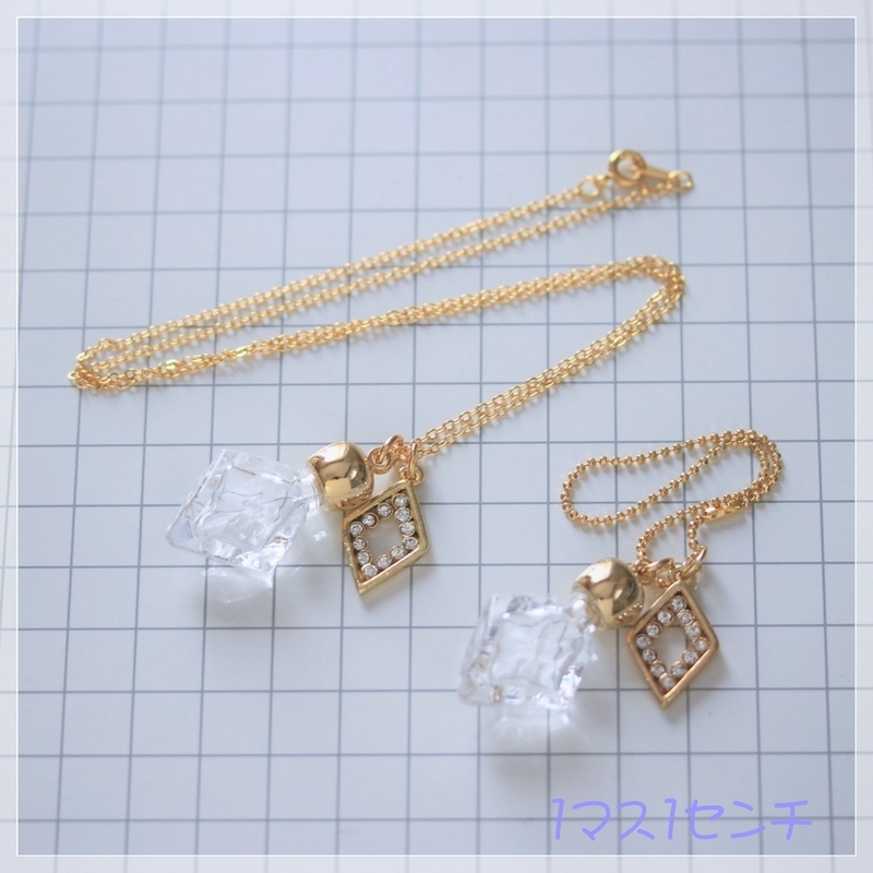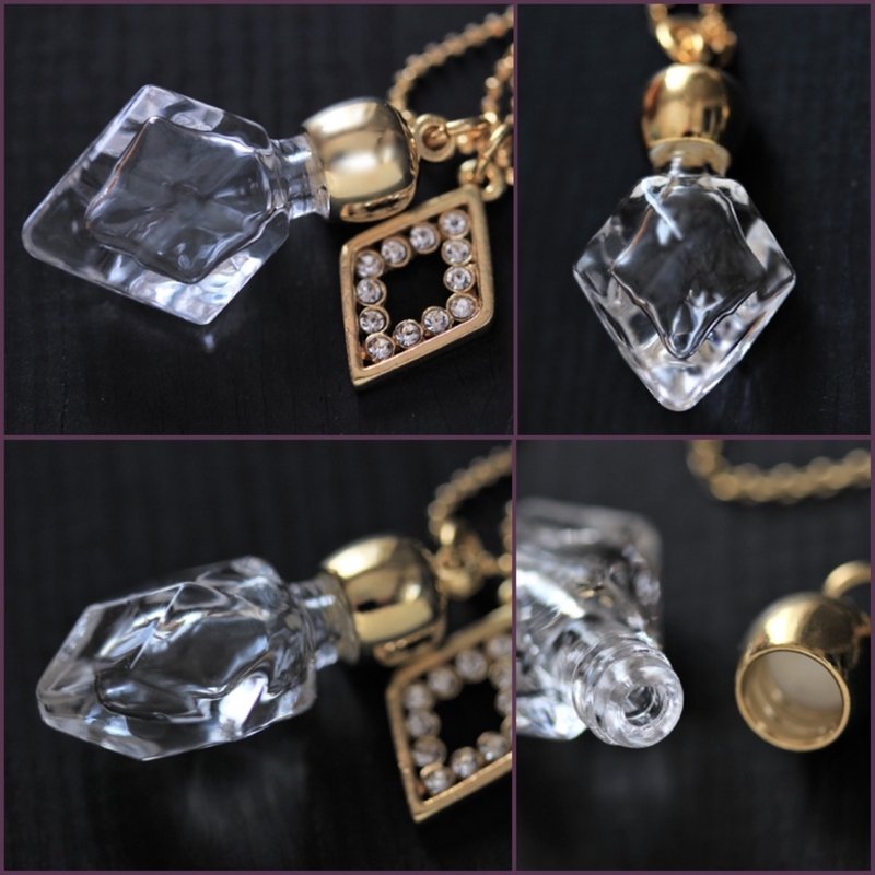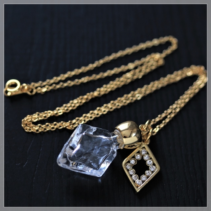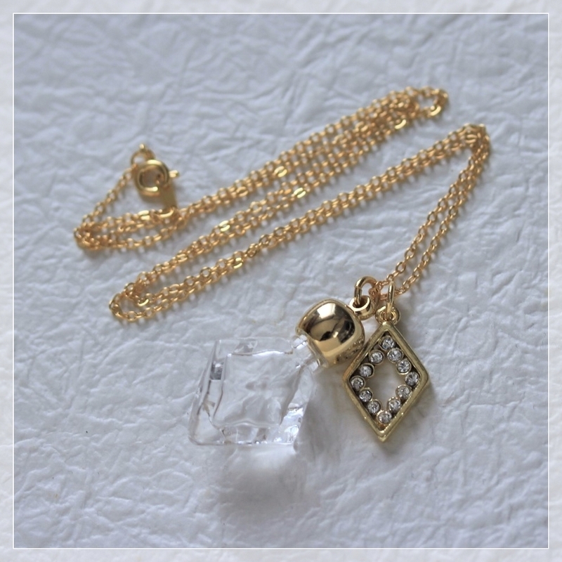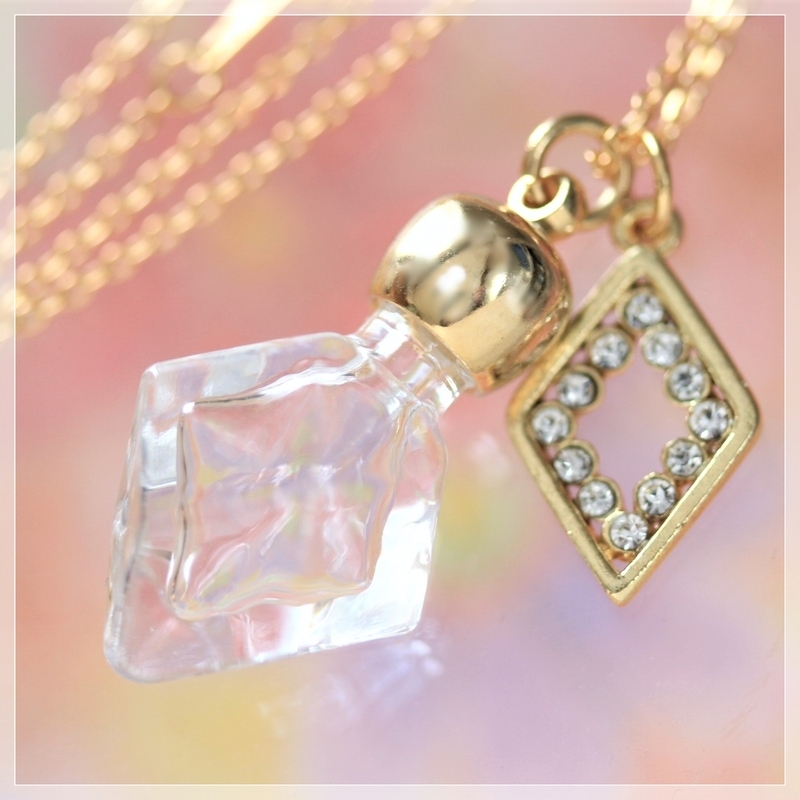 ダイヤ型(菱形)の飾りがついたミニ香水瓶 ネックレスです。