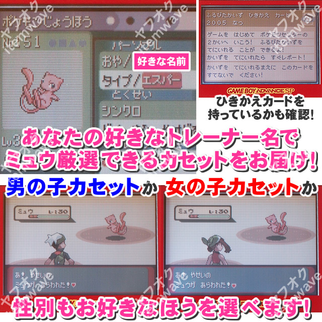 ポケモンエメラルド ふるびたかいず 色違いミュウ 親名男女 電池交換対応 しんぴ むげんのチケット ポケットモンスターエメラルド GBA
