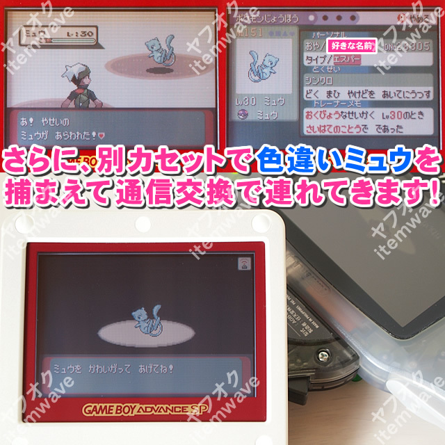 【スペシャル特典】野生のミュウとは別に、別カセットで「色違いミュウ」を捕まえて連れてきます!