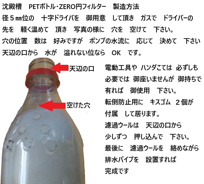 DIY好きの為の 沈殿槽 PETボトル・ZERO円フィルター パイプセット シングルタイプ 5