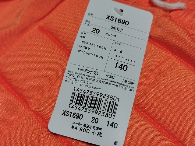 【新品】定価4900円 asics/アシックス 子供 パッド付 ゴールキーパー ハーフパンツ XS1690【140】橙◆タンパン サッカー キーパー スノボ