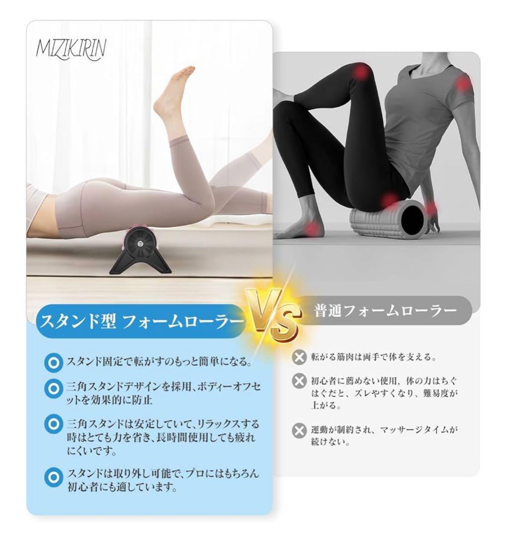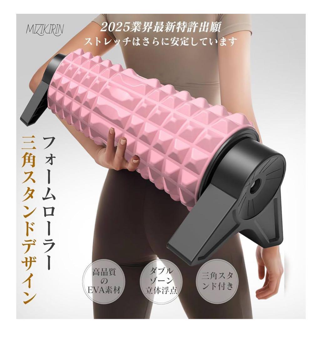 特徴的な三角スタンド付きで、安定感があり滑り止め効果も抜群。筋膜リリースやストレッチ、ヨガ、トレーニング後のケアに最適です。