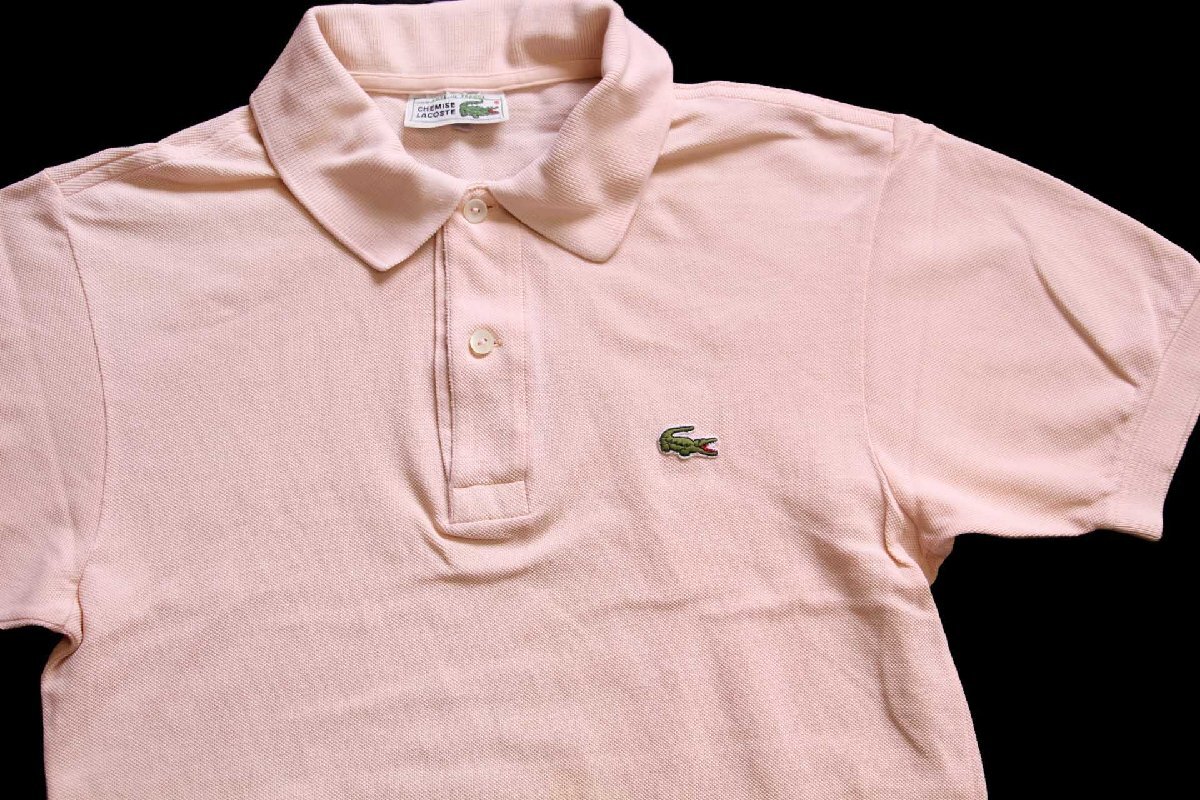 ★70s フランス製 CHEMISE LACOSTE ラコステ ワンポイント コットン 鹿の子 ポロシャツ 薄ピンク 2★181 ビンテージ フレンチ ユーロ
