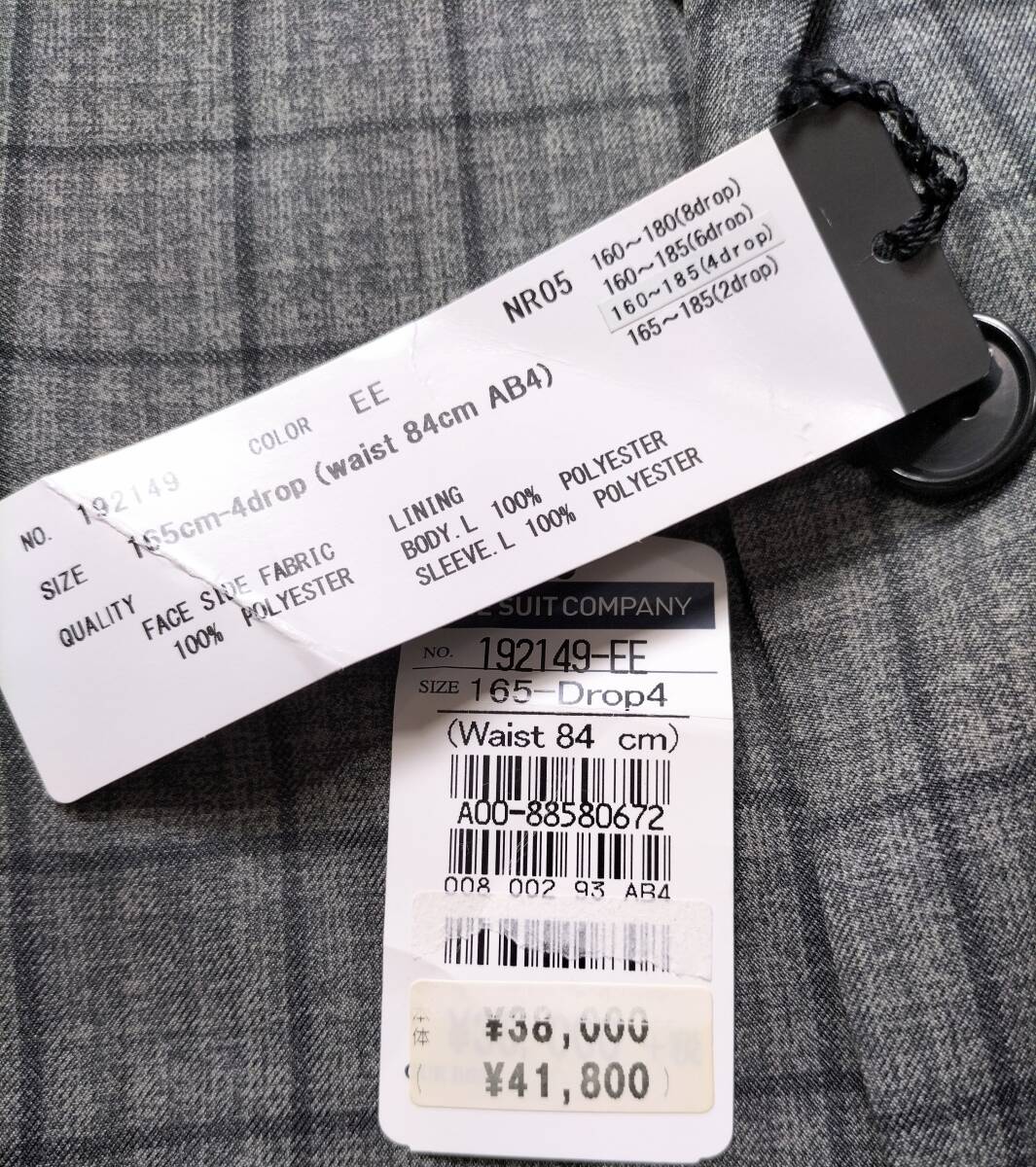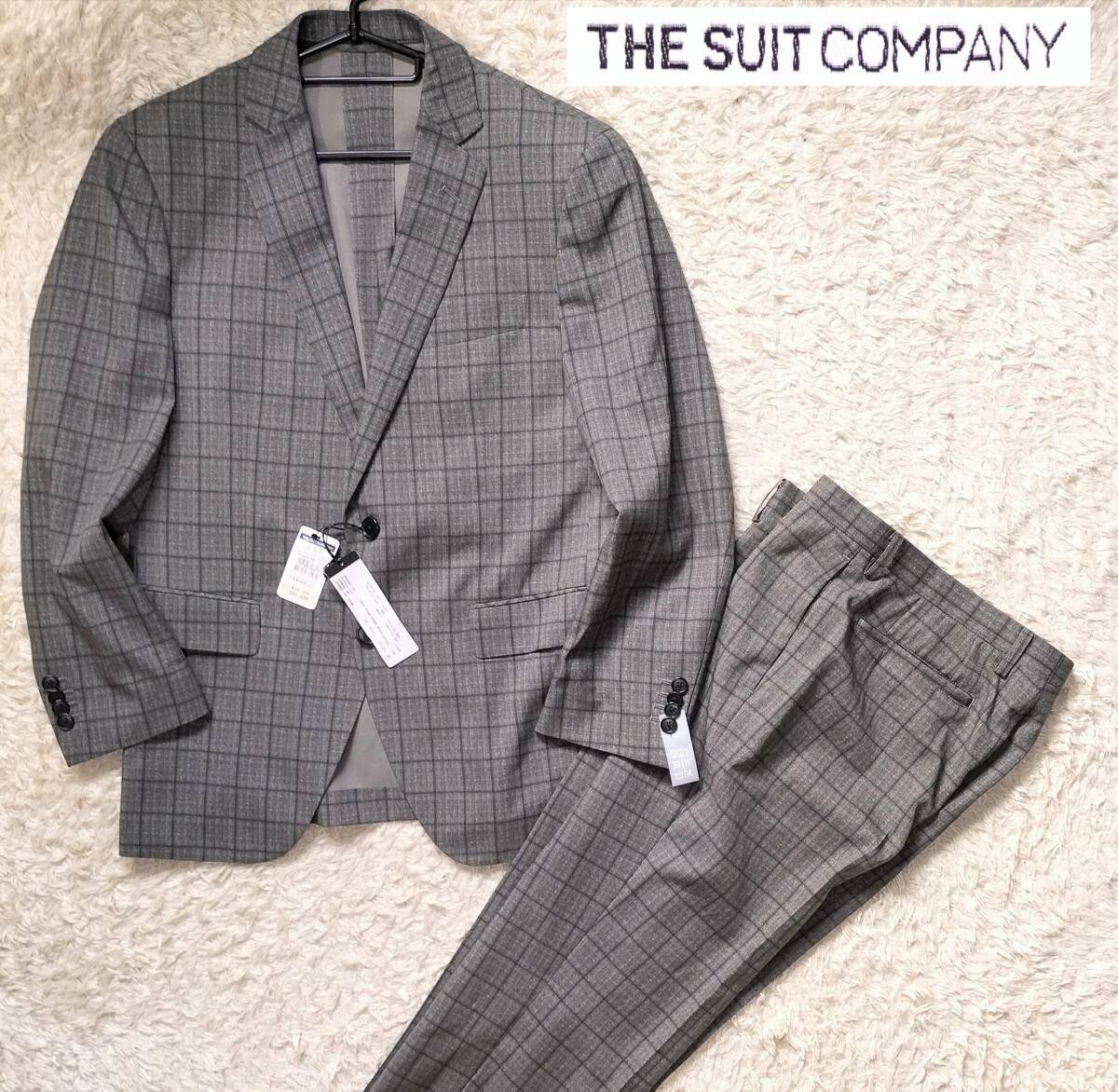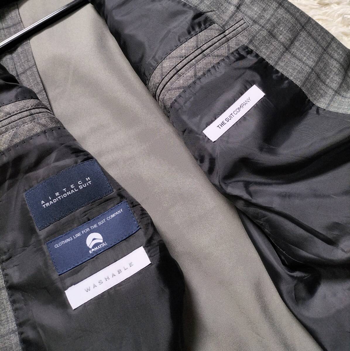 【未使用★定価41,800円】165-4DROP スーツカンパニー●2Bスーツセットアップ 上下セット/グレーチェック☆高機能エアテック (8151)