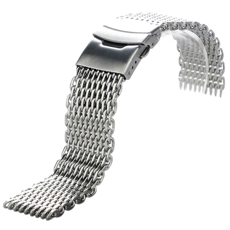 18mm 高品質 ステンレス製シャークメッシュブレス ミラネーゼ シルバー色 お買い得 ☆★★★★★残少
