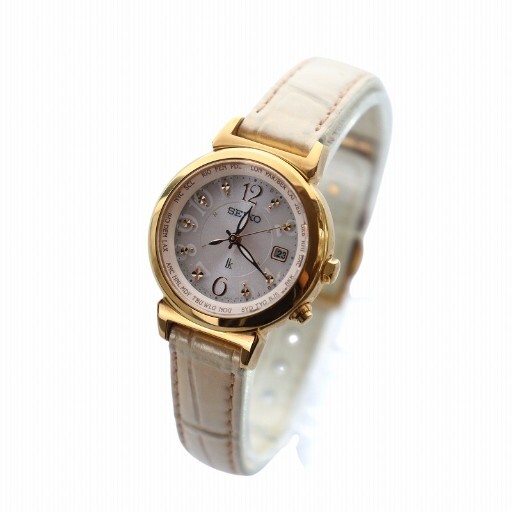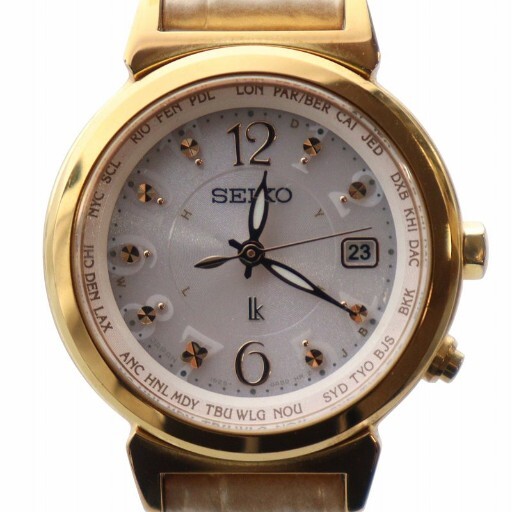 セイコー SEIKO ルキア LUKIA ラッキーパスポート 腕時計 ウォッチ ソーラー ロゴ カレンダー付き ゴールド色 1B25-0AE0