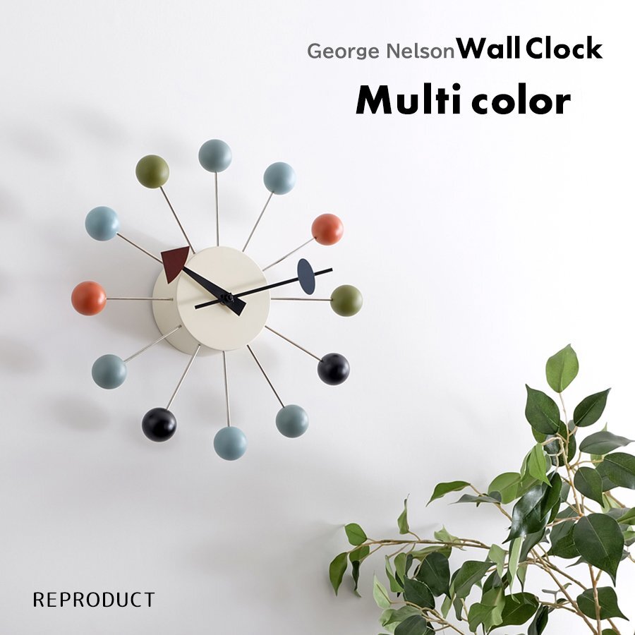 ボールクロック マルチカラー 掛時計 ウォールクロック 壁付け インテリア家具 雑貨 レトロ デザイナーズ ジョージネルソン リプロダクト