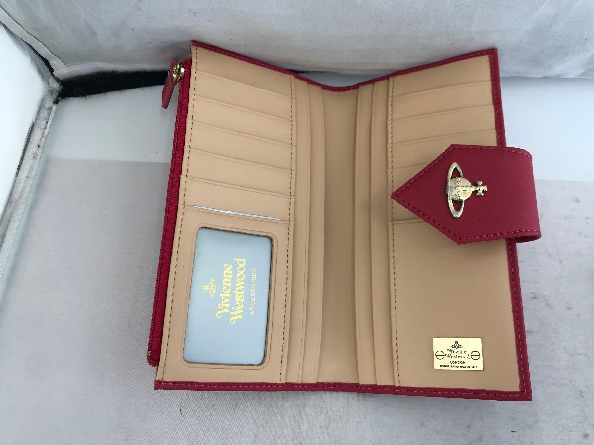 【VIVIENNE WESTWOOD】 ヴィヴィアンウエストウッド 長財布 二つ折りタイプ ピンクレッド系カラー レザー素材 SY02-EOX