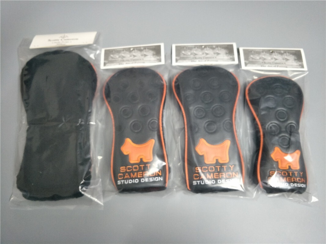 スコッティキャメロン★ウッド用カバー★1W 3W 5W UT 4点セット★黒×(オレンジDOG)