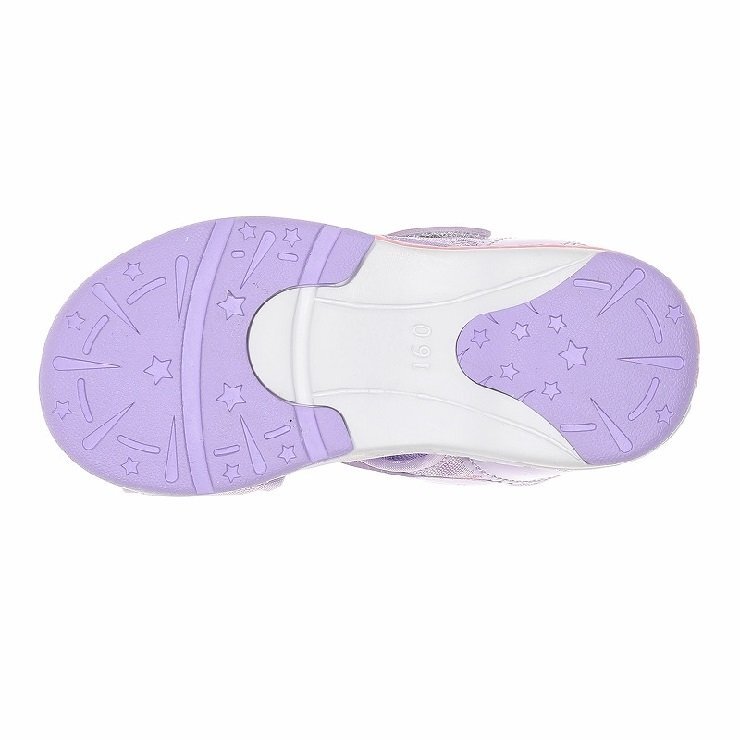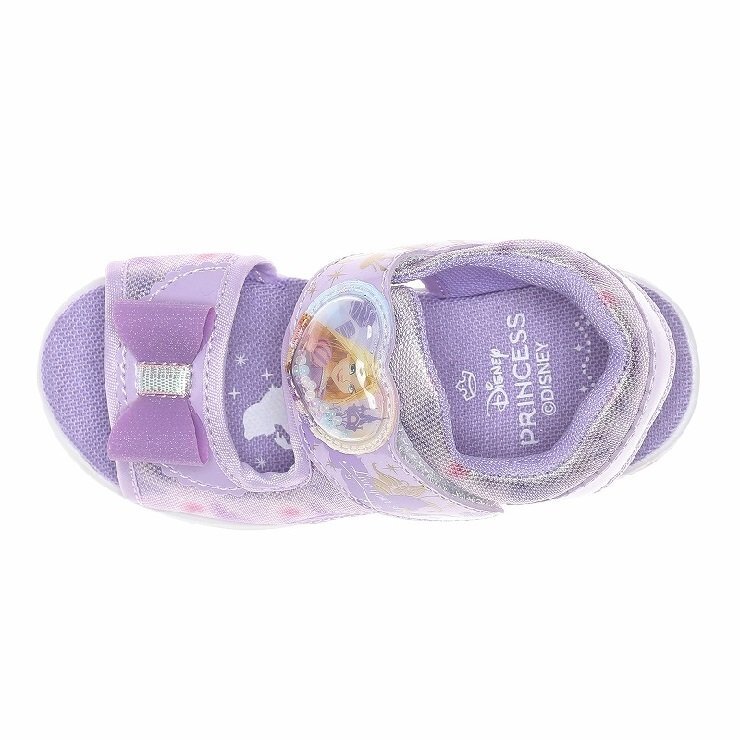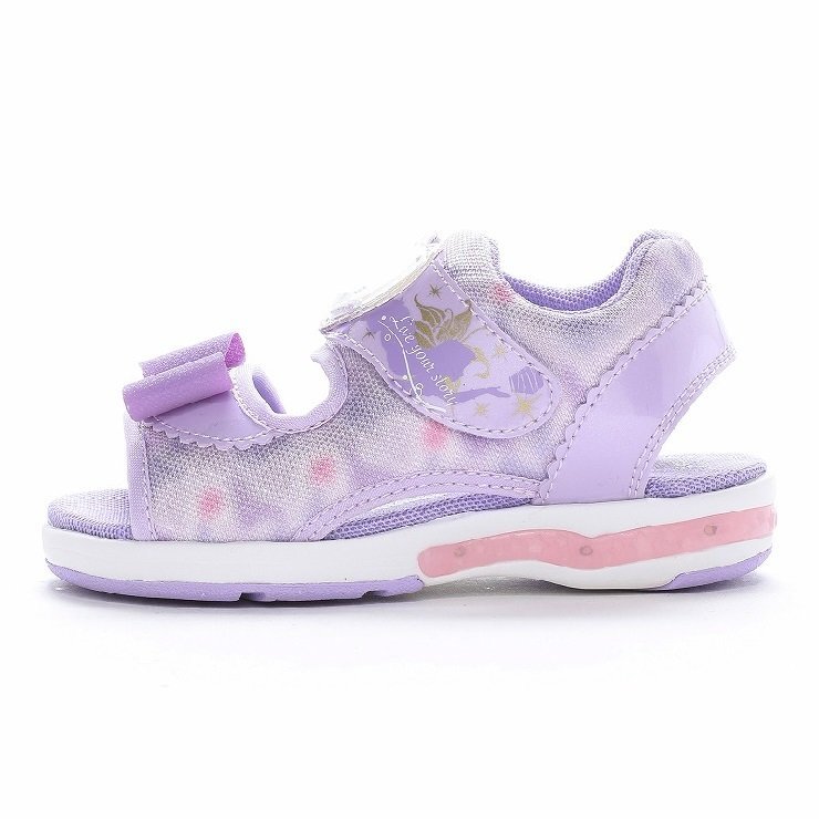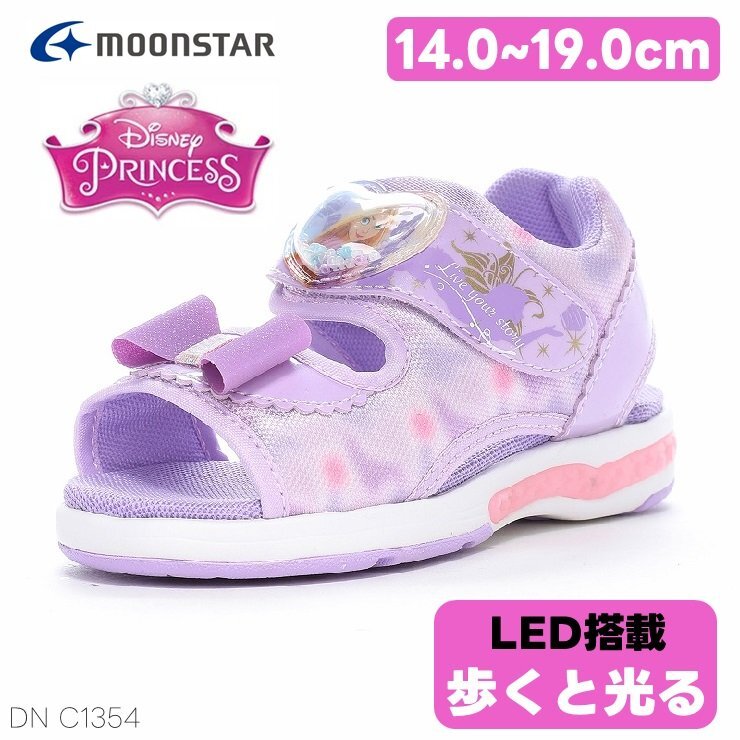 | ディズニー プリンセスのLEDを内蔵したキッズサンダルです。 振動でソールの踵部分が光るので、夜間歩行の安全性を高めます。 発光回数の目安は約30万回、およそ2か月光ります。 パープルはディズニー「塔の上のラプンツェル」のヒロイン、「ラプンツェル」です。 クリア素材のリボン使いや、甲バンド中央のハート型ドームの中にビーズが入ったキューなデザインです。 夜のお祭りなど、お出かけにおすすめです。 重さは16.0cmで片足約120gです。 | |