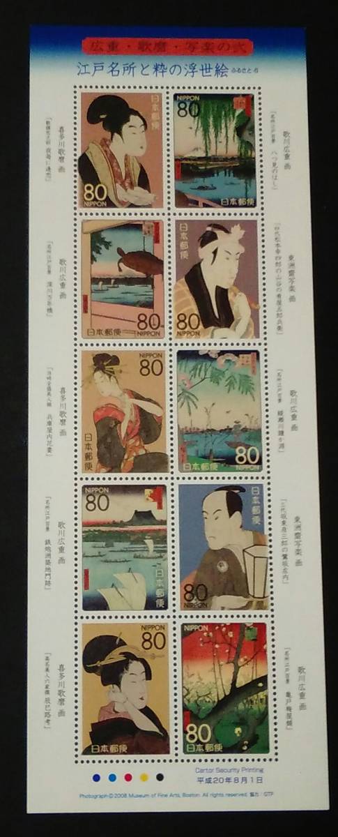 2008年・ふるさと切手-江戸名所と粋の浮世絵第2集(解説書付)シート