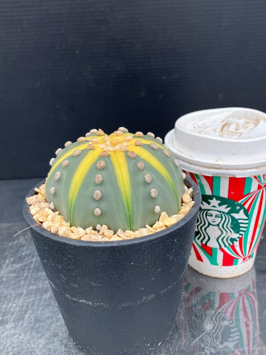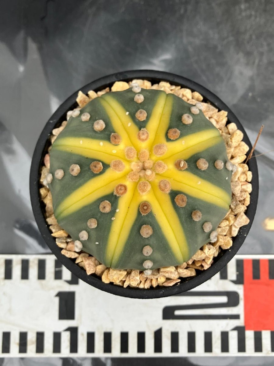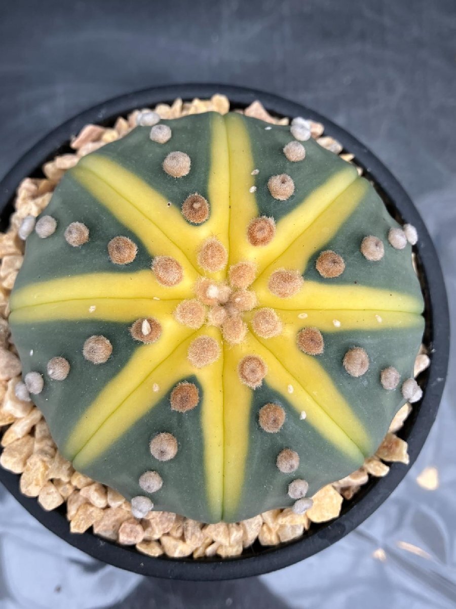 2641 「多肉植物W」アストロフィツム 兜 黄色斑入り 植え【 Astrophytum asterias cv. kabuto・発根・美株】