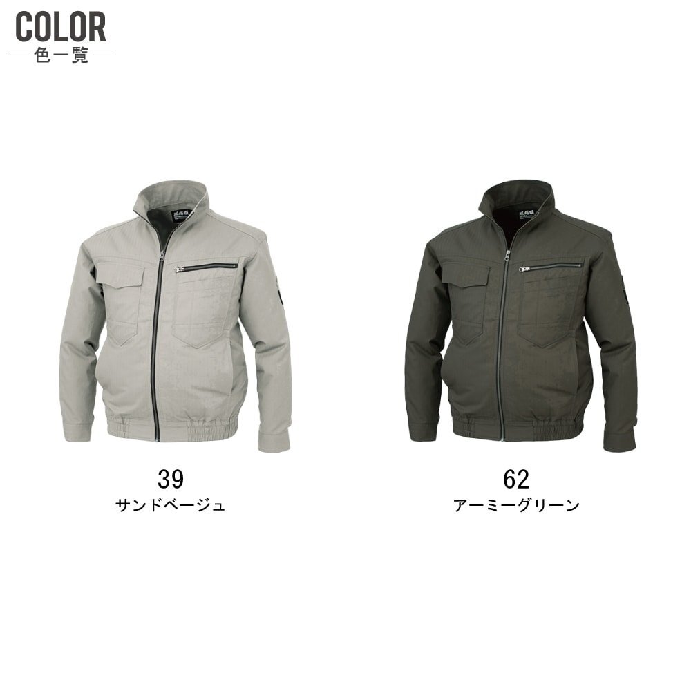 | 空調服説明 & 状態 & 素材 & サイズ & カラー 【画像参照】 | 届いてすぐにお使いいただけるおすすめセット商品! ■空調服 ≪説明≫ 現場服の2170.2270シリーズの空調タイプが登場。 上下セットアップでの着用も可能。 建設現場や鳶職人にもオススメ。 ≪状態≫ 新品・正規品 ≪素材≫ 綿100% 高密度ヘリンボーン ≪特徴≫ ・調整ヒモ ・左胸ファスナー付きポケット ・左胸二重ポケット ・フラップ付きポケット ・両脇ポケット ・左袖ペン差し ・左内側バッテリーポケット ・袖口アジャストボタン ・金属ボタン(ドットボタン) ・金属ファスナー ≪素材特徴≫ ・吸汗 ≪サイズ≫ タイトル名【 画像参照 】 ≪カラー≫ タイトル名【 画像参照 】 | セット 内容 | ■電池ボックス ≪内容≫ ・電池ボックス×1 出力:強(4.8V)、弱(2.4V)(2段階) 外寸:W65mm・D19mm・H85mm 連続使用時間 強(4.8V)設定時:約4時間 弱(2.4V)設定時:約16時間 エネループ2000mAh(単三4本)を使用した場合 ■ファンセット ≪カラー≫ タイトル名【 画像参照 】 ≪内容≫ ・ファン×2 ・ケーブル×1 ■:本商品の【 サイズ・カラー 一覧(服単品) 】 ■:本商品の【 ジャンパー・シャツ・パンツ 】 ■:本商品の【 フルセット(服+バッテリー+ファン) 】 ■:本商品の【 電池式セット(服+電池ボックス+ファン) 】 ■:本商品の【 ファンセット(服+ファン) 】 ■:本商品の【 備品 一覧 】 □:綿100% 空調服 一覧 □:ポリエステル100% 空調服 一覧 □:フルハーネス 空調服 一覧 |