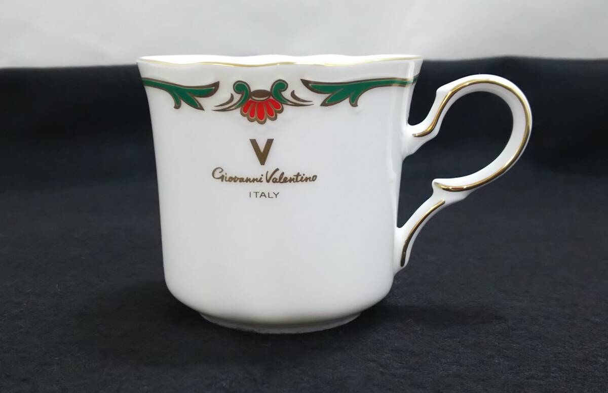 【菊水-509】(TK)Giovanni Valentino ジョバンニ バレンティーノ ティーカップ 2個セット/ソーサー付/陶器/白赤緑金/割れ物/美品(IT) |