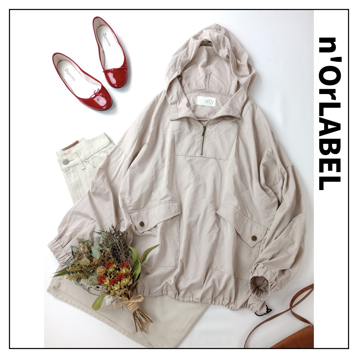 n'OrLABEL ノアールレーベル「一枚あると重宝する♪」フーデッド アノラック マウンテン パーカー ジャケット Free ベージュ(32M+4490)☆