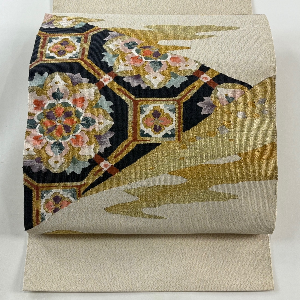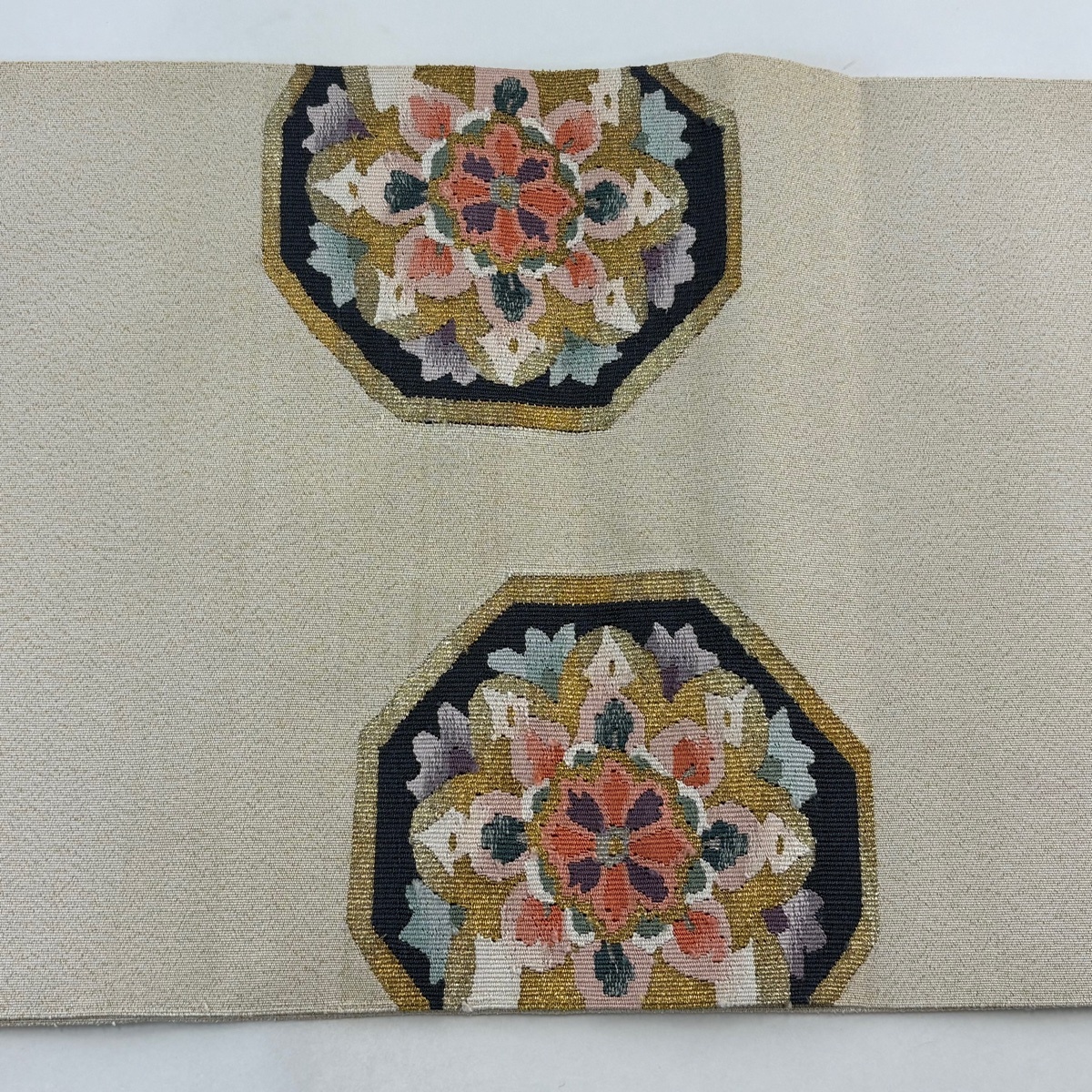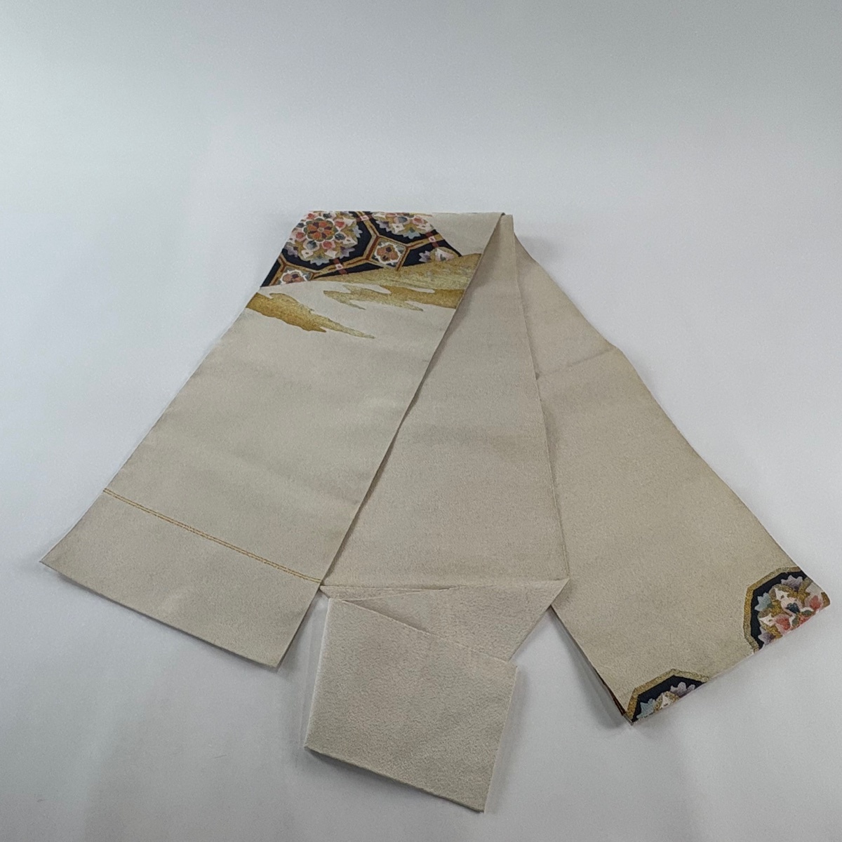| 名古屋帯 名品 八寸名古屋帯 松葉仕立て 蜀江華文 霞 金銀糸 クリーム 正絹 【中古】 |