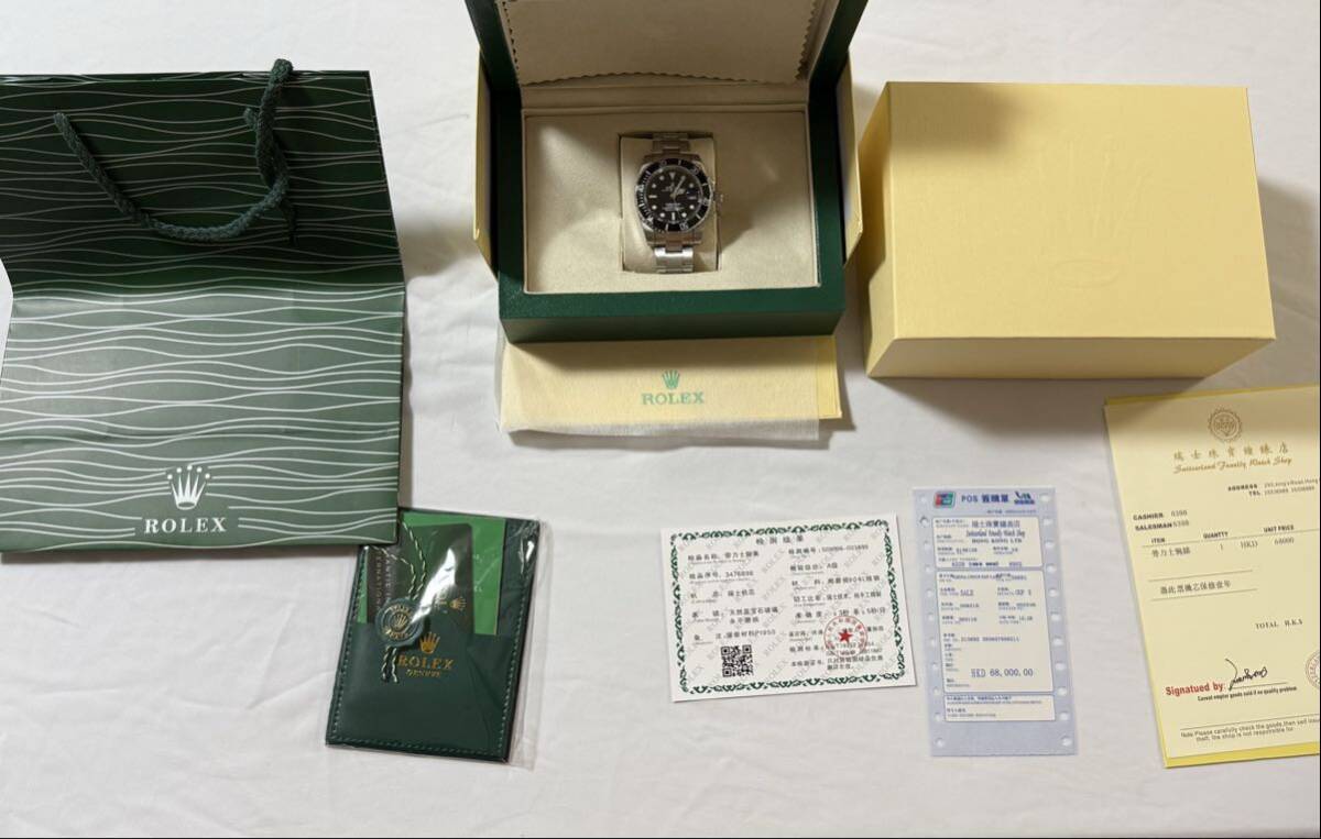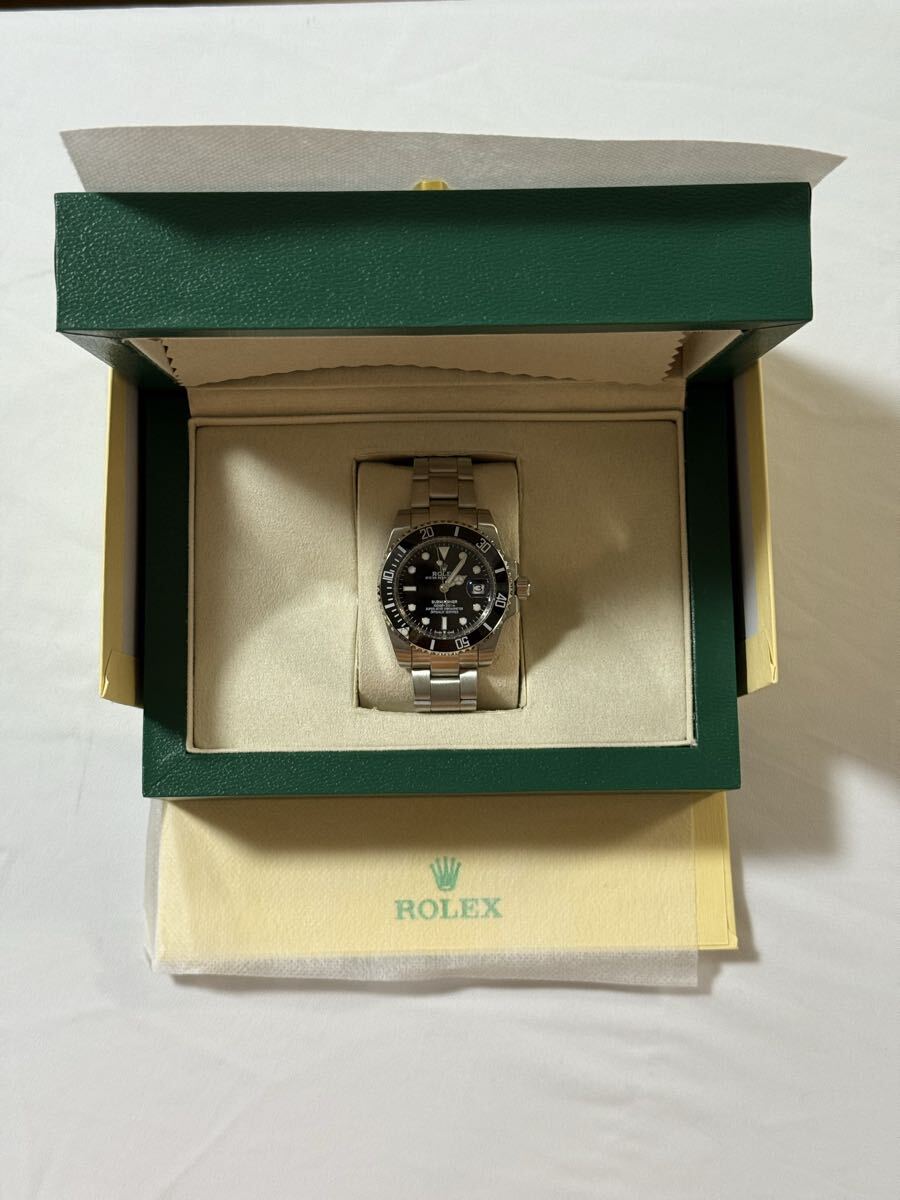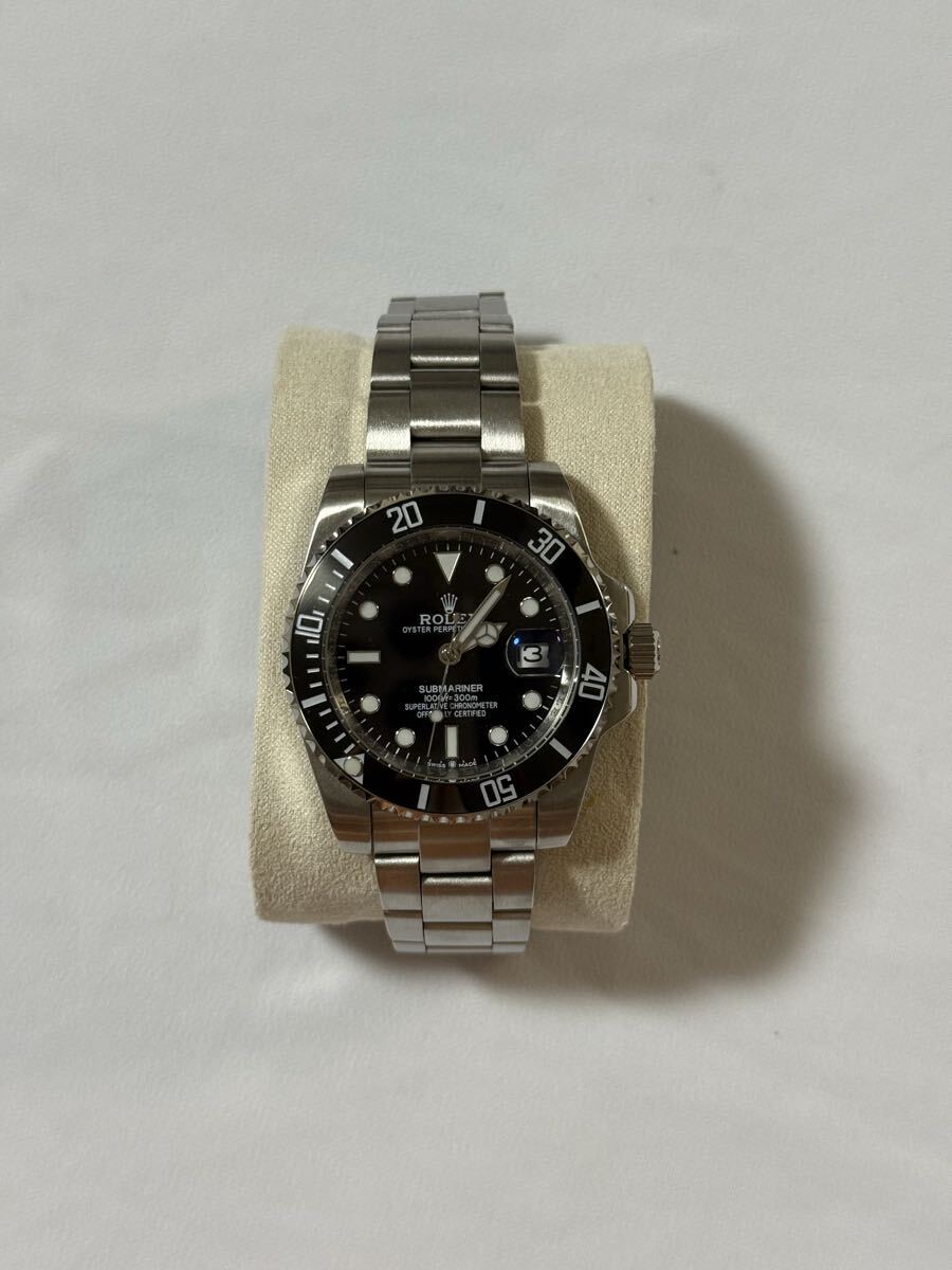 高級時計の代名詞であるロレックスの「サブマリーナ デイト」モデル。海の深層まで耐える300メートルの防水性能を誇り、ダイバーズウォッチとしても使用可能。