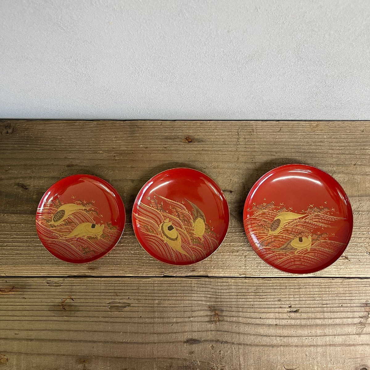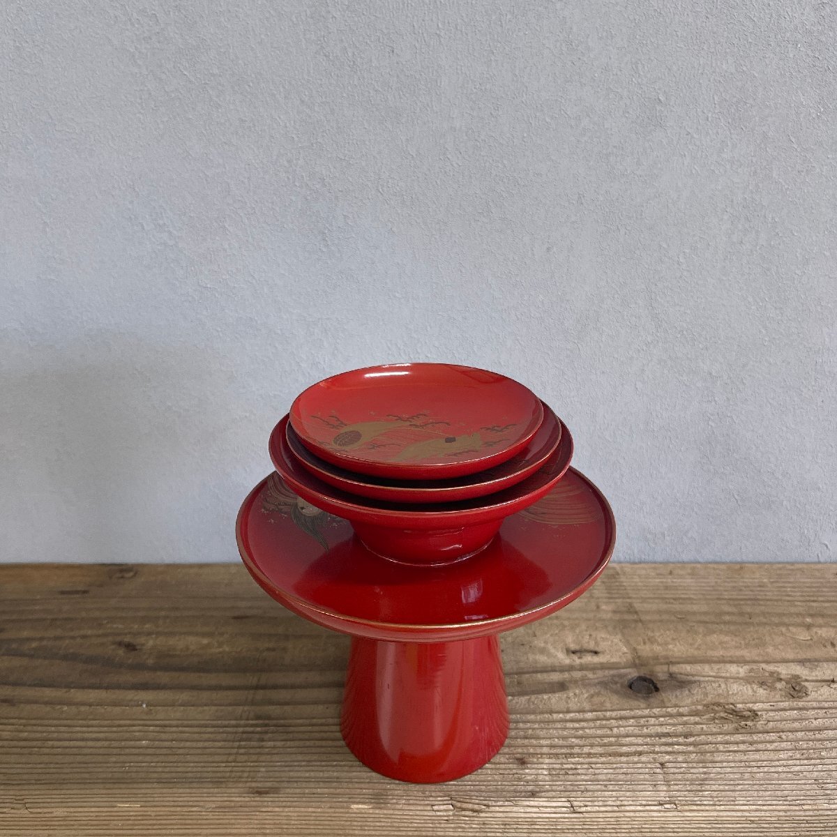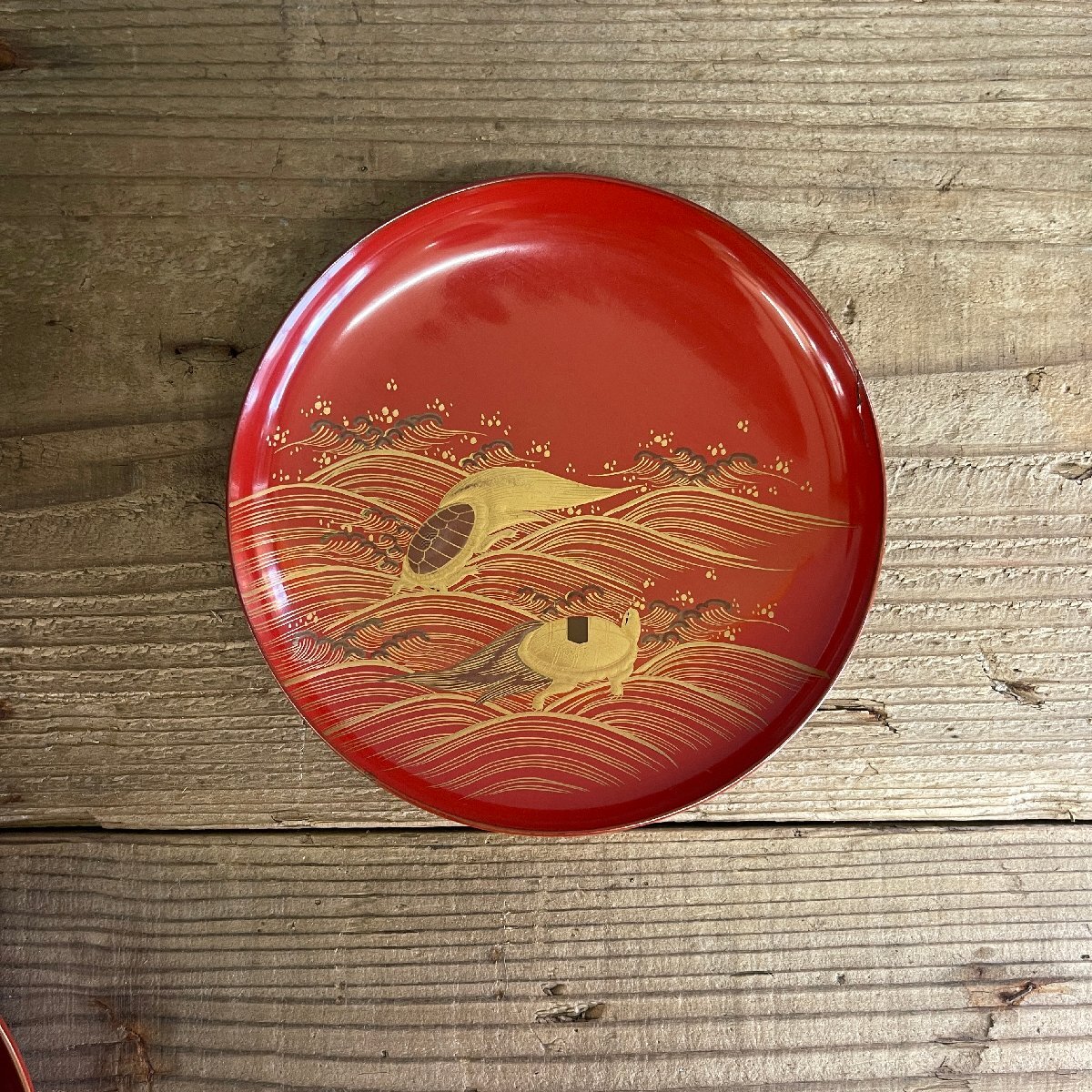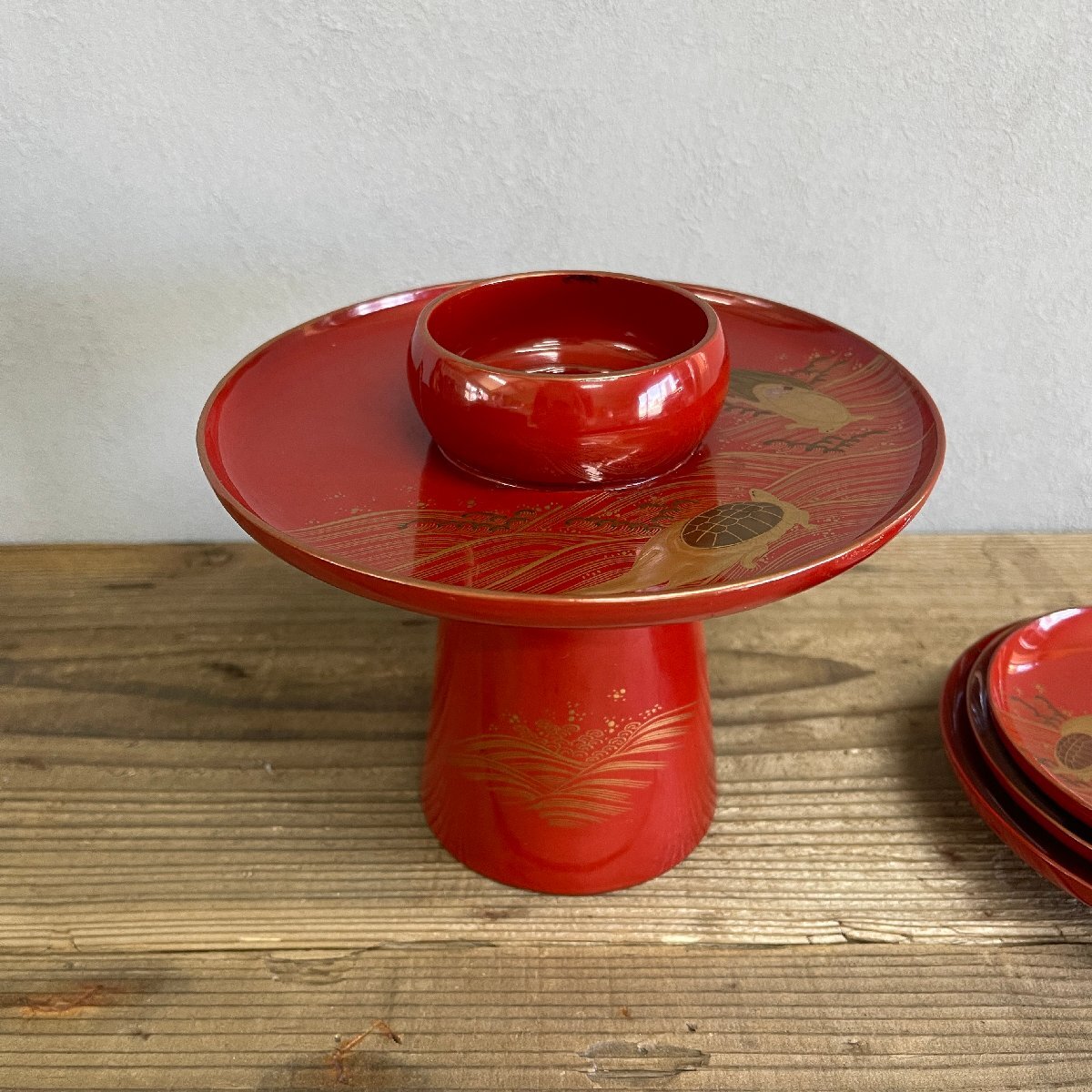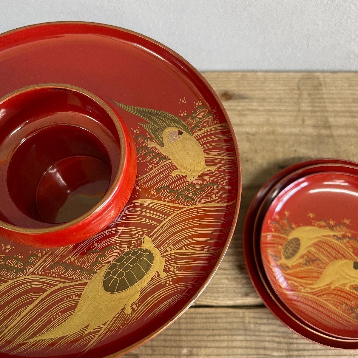 朱色の本体に金で書かれた鶴亀がとても美しく、時間が経って