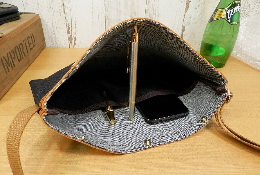 | 当方の作品をご覧頂きありがとうございます。 国産の材料を使い、大阪の小さな工房で一点一点ハンドメイドにて丁寧に作品を仕上げております。 お客様に喜んで頂ける商品造りを目指していきたいと思っております。 PROTO LEATHERSおわんのバッグ工房←製作日記ブログやってます^^ 当工房の人気商品、岡山デニムのサコッシュです。 一部にキャメルカラーのヌメ革を使用し、ビンテージ風レトロな仕上がりです。 ちょっとしたお出かけなどに便利な小ぶりなサイズ。 財布、鍵、スマホ・などを気軽に収納できます。 ☆追加カスタム可能です☆ 〇ファスナー開閉に変更 +1000円 ↑更にYKKの高級エクセラファスナーに変更 +1500円 落札後にお知らせくださいませ。 ☆☆☆☆☆☆☆☆☆☆☆ 実寸サイズ(本体) 高さ 約19cm 横幅 約30cm 肩紐の長さ 65~MAX135cm程度 色: インディゴ系(ボディ)×キャメル(レザー) 素材: 岡山製デニム(ボディ) 国産ヌメ牛革(レザー) 日本製 HAND MADE IN JAPAN | |||