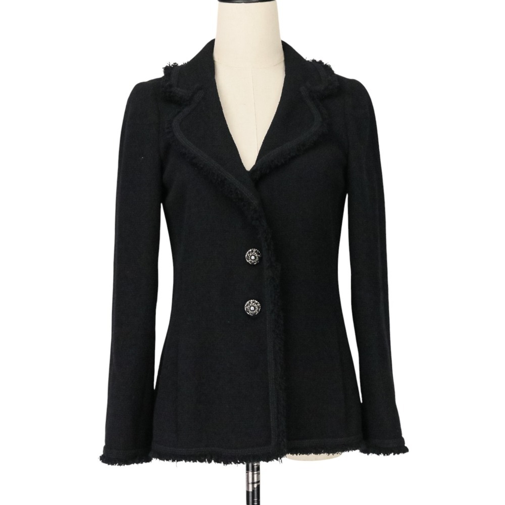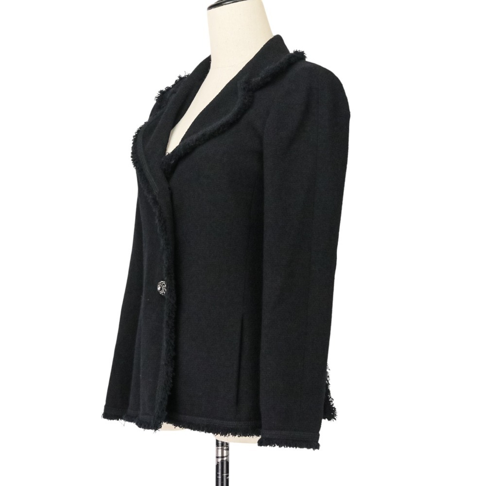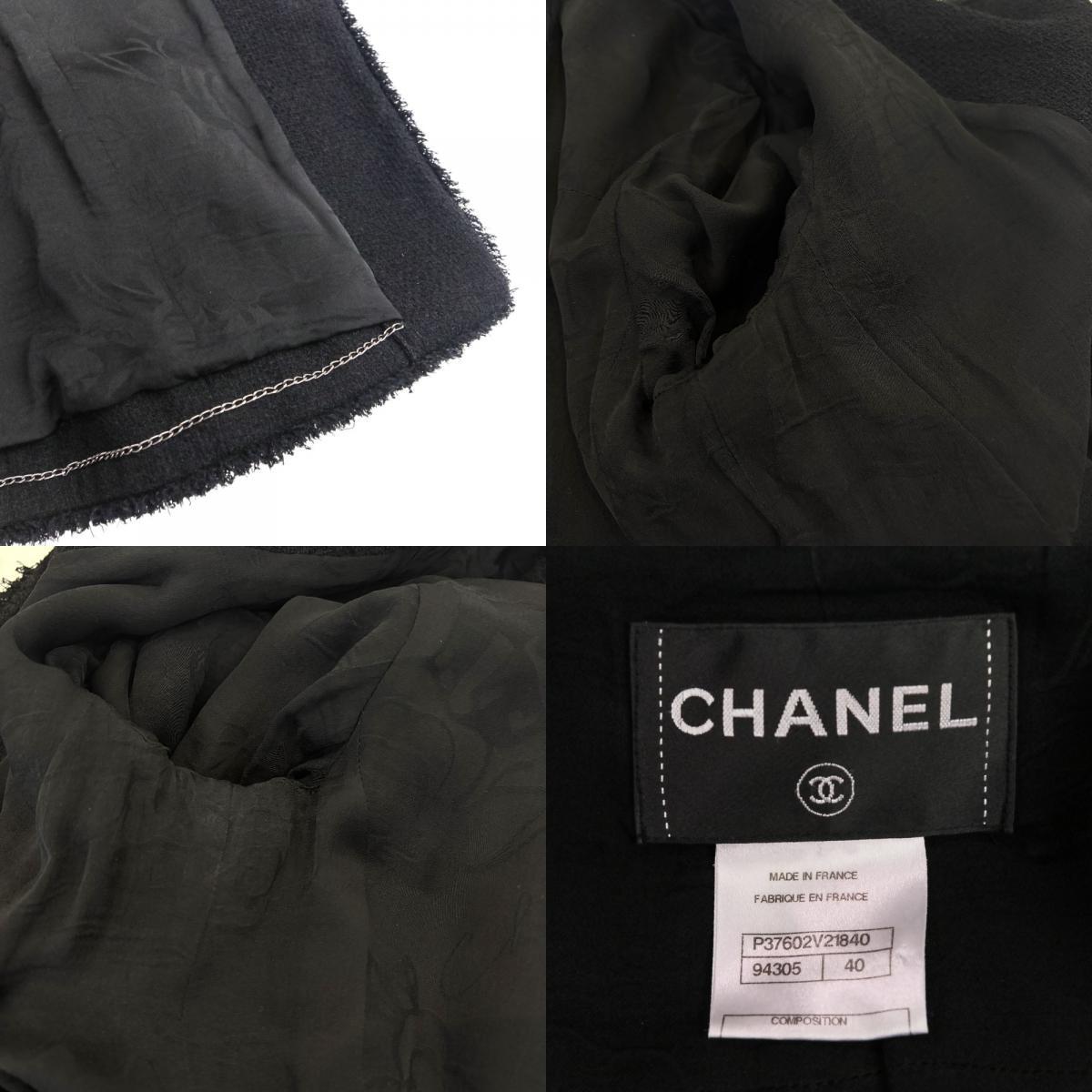 良品 CHANEL シャネル チェーンボタン ツイード テーラードジャケット P37602 サイズ40 ブラック