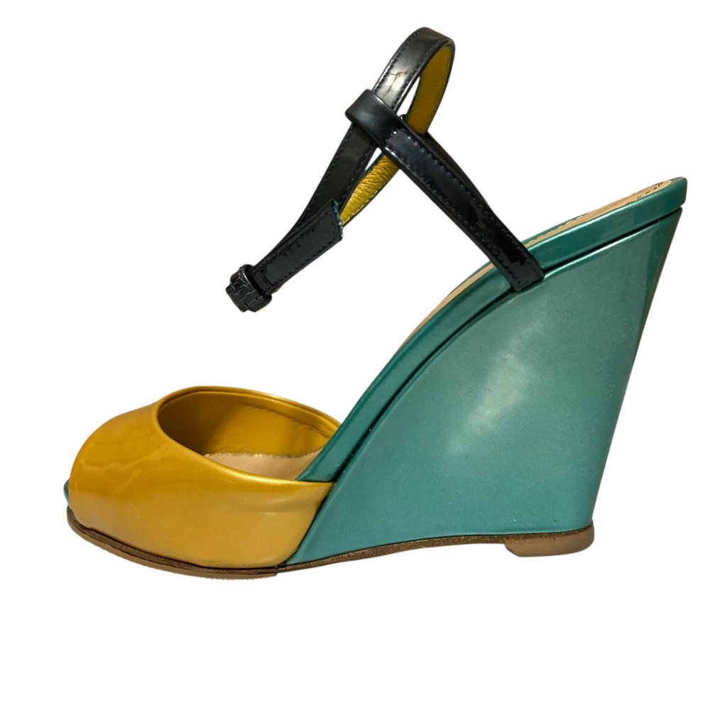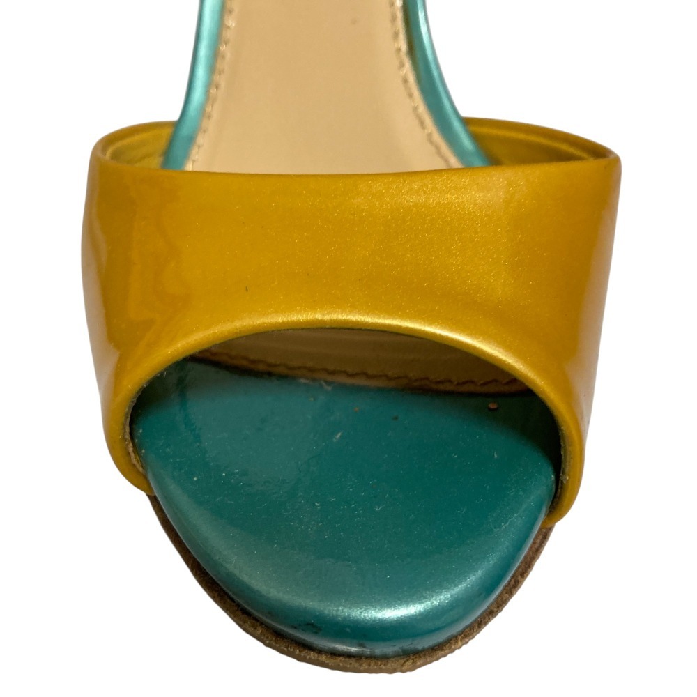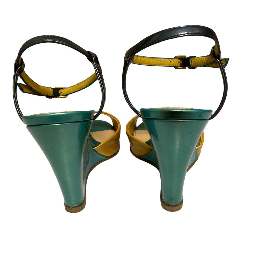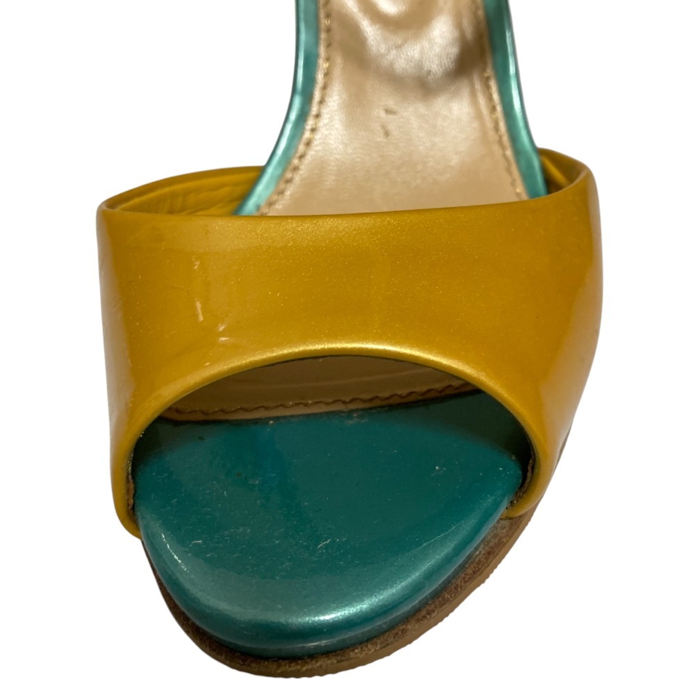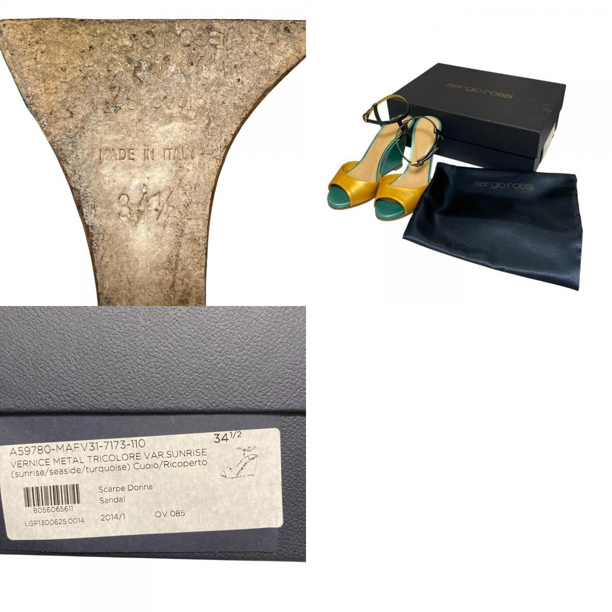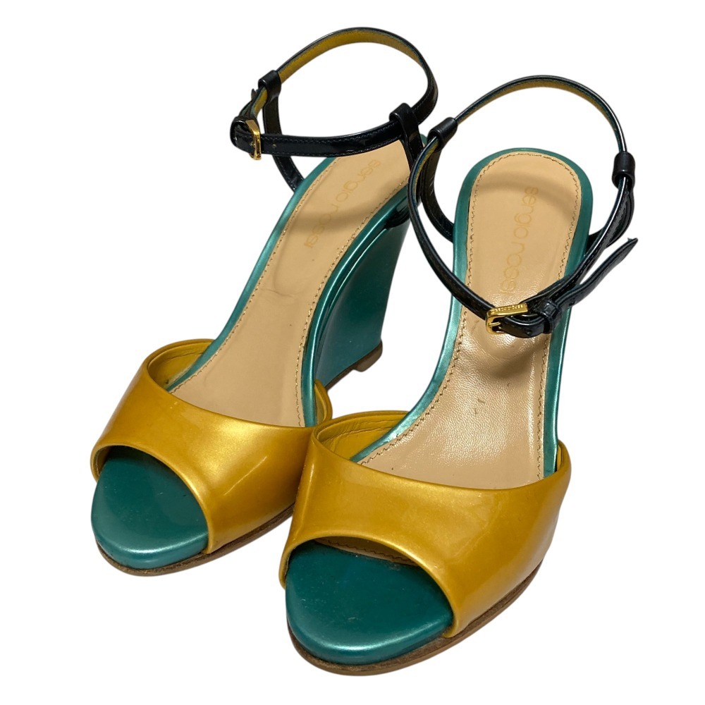 商品名:sergio rossi セルジオロッシ ウェッジソール ストラップサンダル 34 1/2 約21.5cm ゴールドカラー エメラルドグリーン