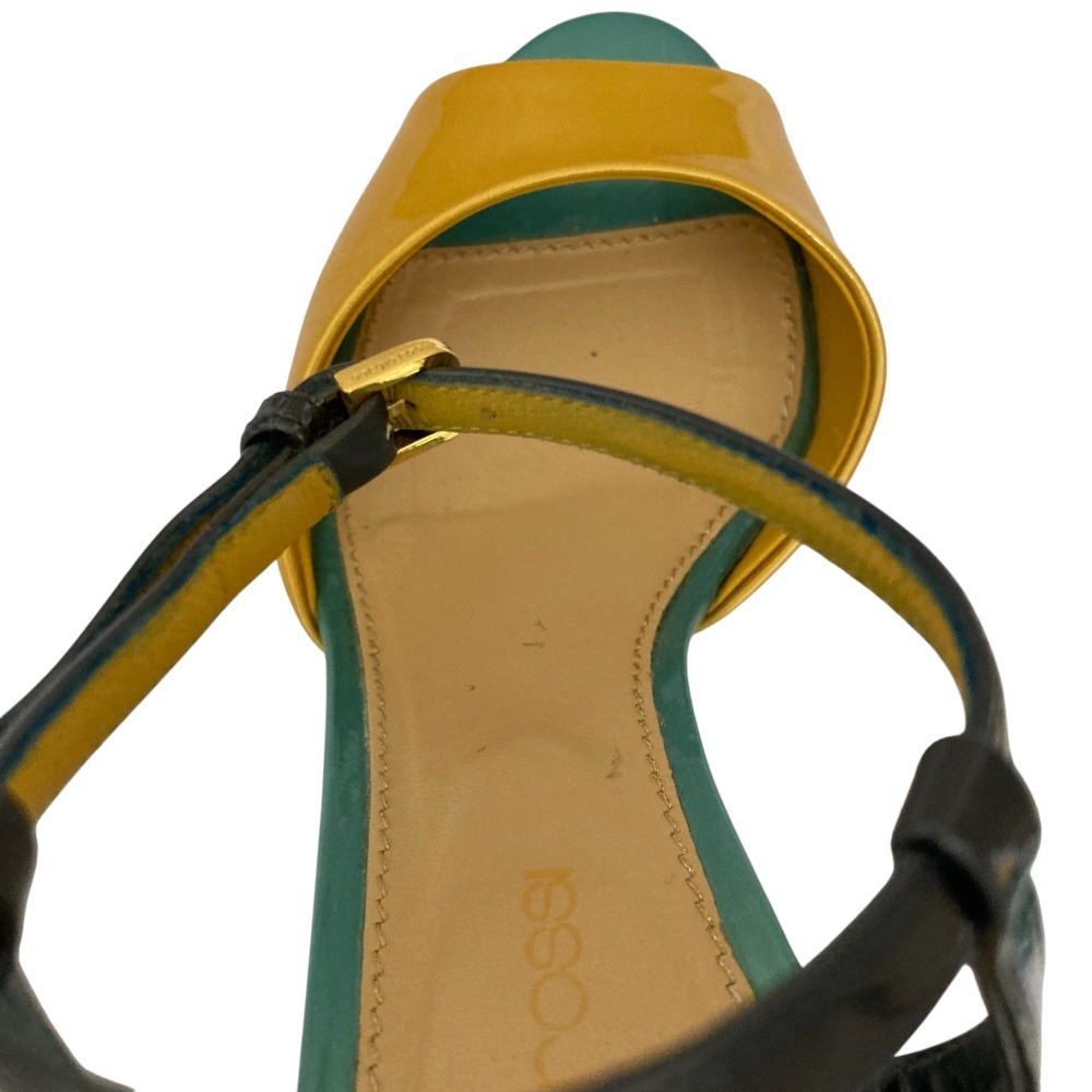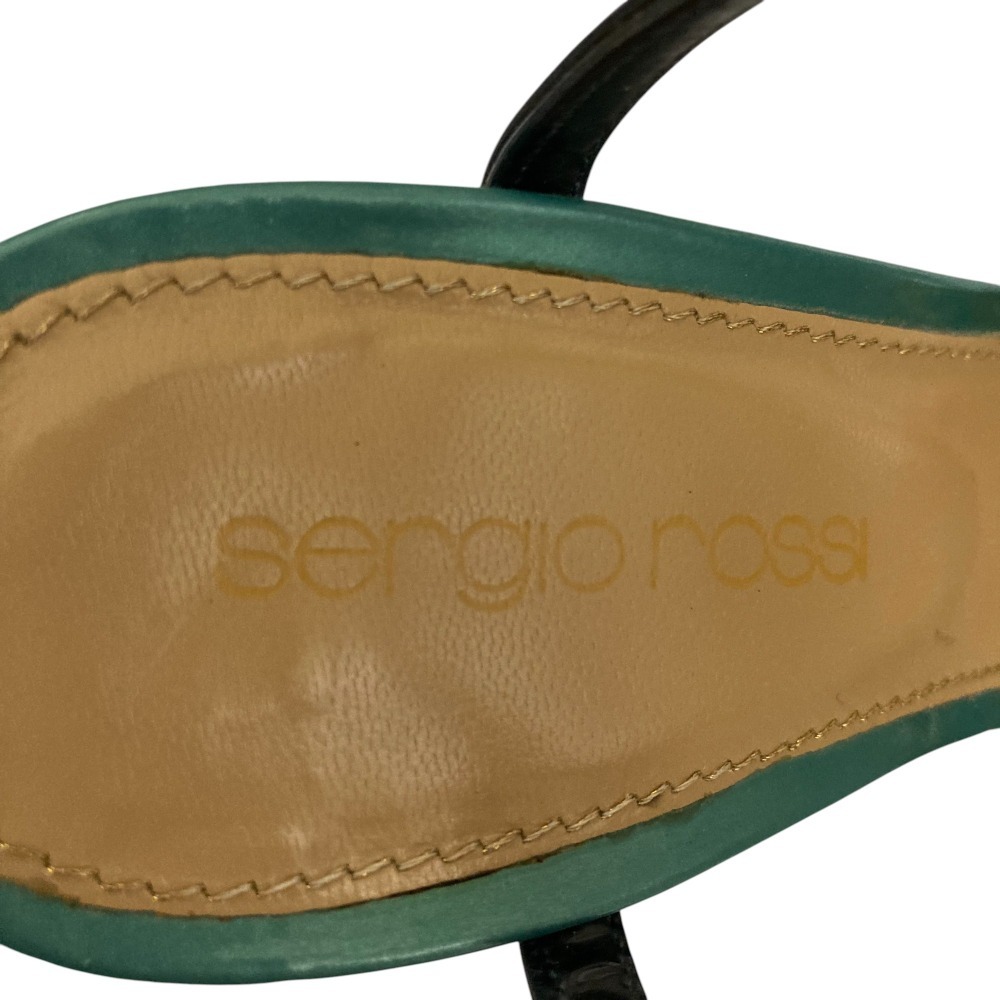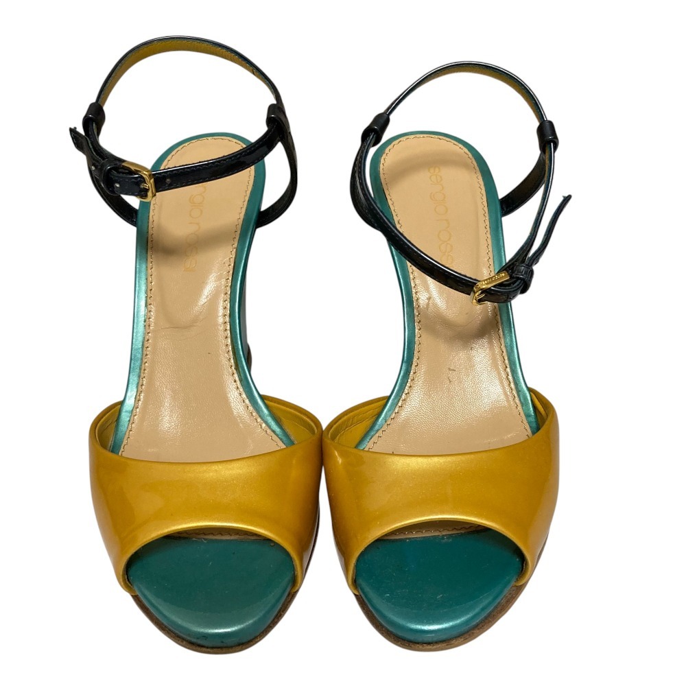 美品 sergio rossi セルジオロッシ ウェッジソール ストラップサンダル 34 1/2 約21.5cm ゴールドカラー エメラルドグリーン