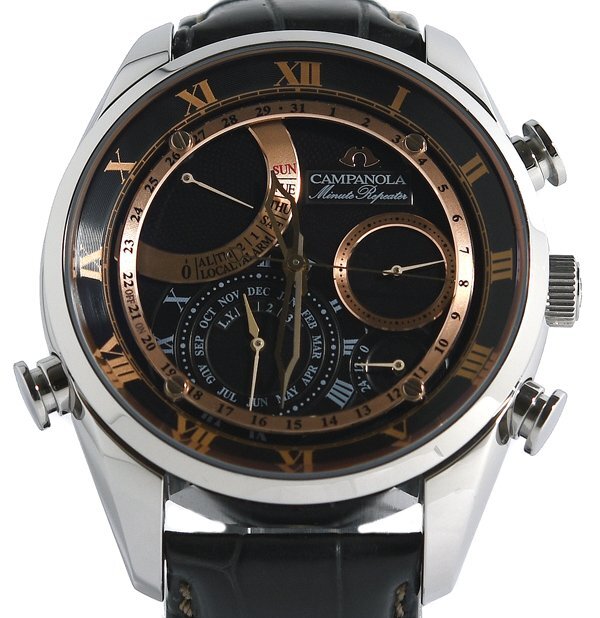 | 仕様 | パーペチュアルカレンダー / デイ&デイト表示 / 24時間表示 / ミニッツリピーター / デュアルタイム機能 / ローカルタイム機能 / アラーム 1・2 | ||