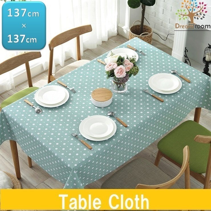 テーブルクロス 水色水玉 PVC製 防水 防油 加工 正方形 137cm×137cm ランチョン ティーマット テーブルリネンセットI-002