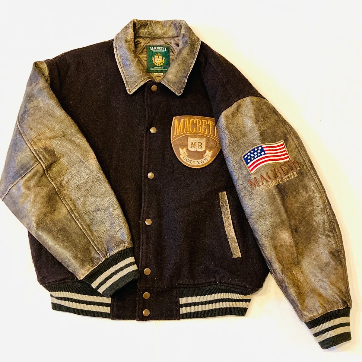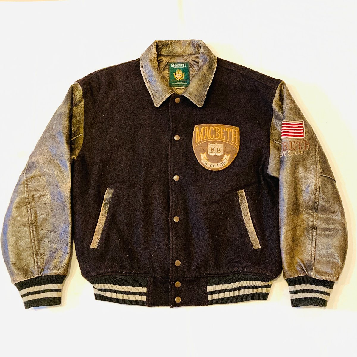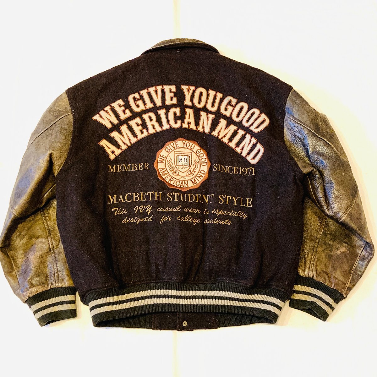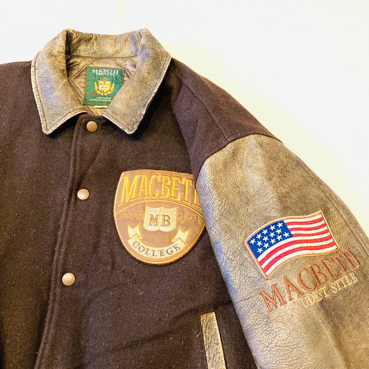 MACBETH マクベス 日本製 本革 牛革 レザー/ウール ジャケット スタジャン ブラウン系 LARGE MJA-5278-18
