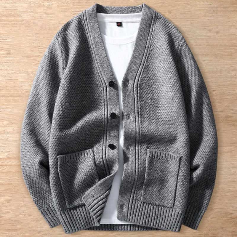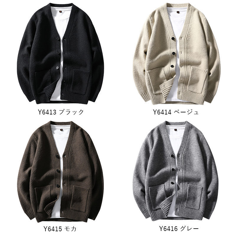 Y6416-XL グレー 新品DCKMANY カーディガン ウール混 ニット セーター 柔らか 防寒 暖かさ 秋冬 厚手 メンズ カジュアル トップス アウター