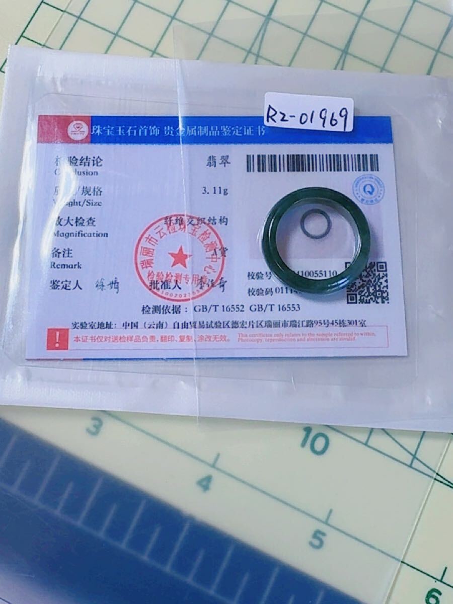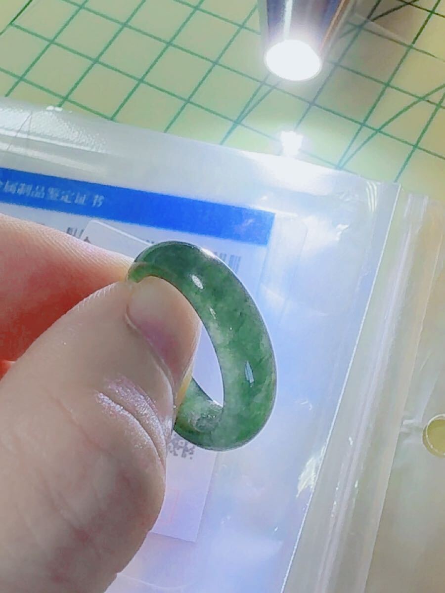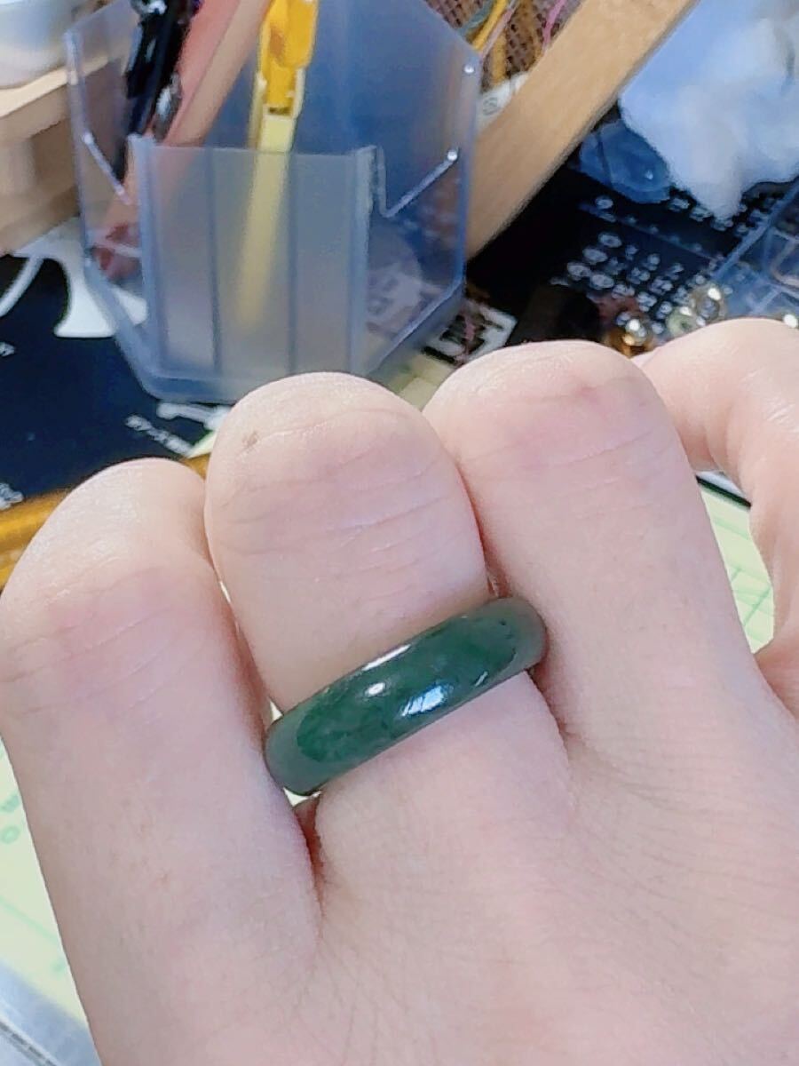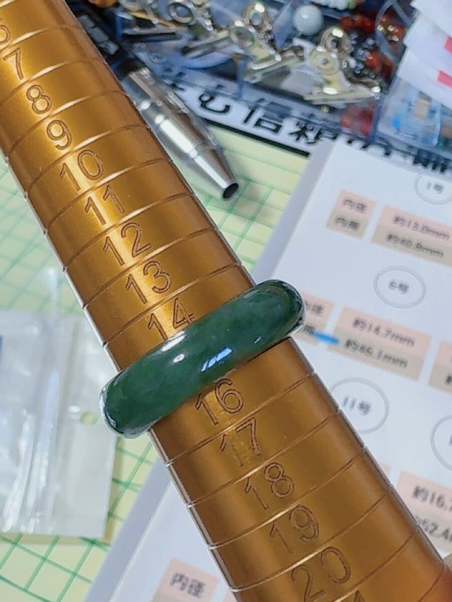 R2-1969天然翡翠《本物保証》ビール瓶グリーン 指輪 約14~15号 翡翠リング 一点物 縁起物 御守り 魔除け 昇進成功 風水 金運財運 幸運 幸福 パワーストーン