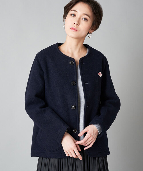 「DANTON」 ノーカラージャケット 36 ネイビー レディース