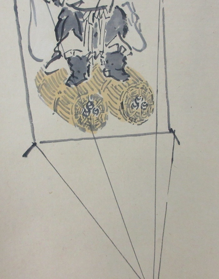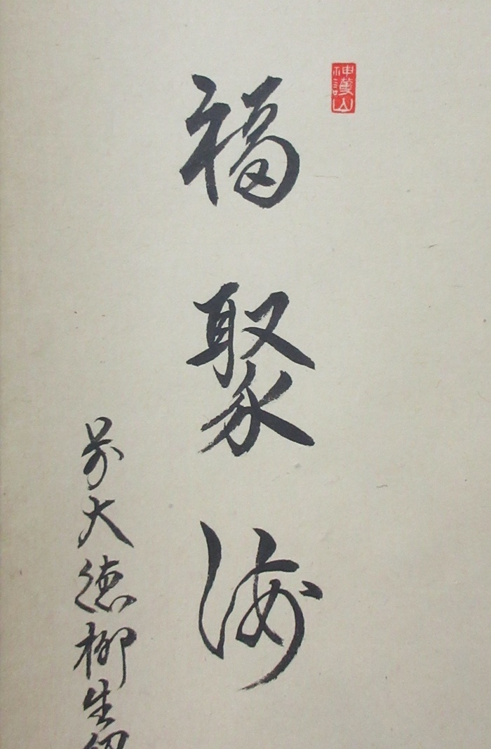 ≪真作≫【B0509】茶道具 茶掛 仲春洋 画 大黒様の凧の図 臨済宗 前大徳 柳生芳徳禅寺 橋本紹尚 画賛 『福聚海』 共箱 即決 送料無料