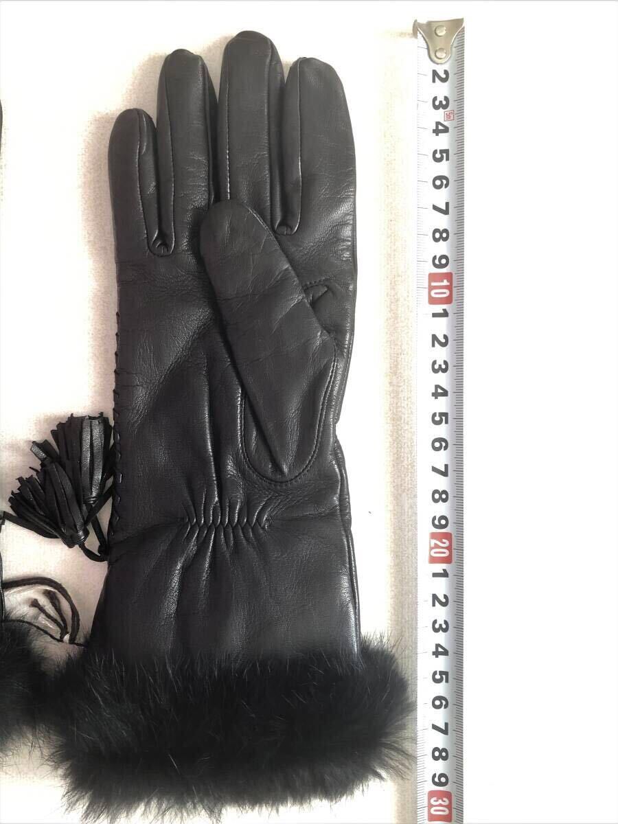 タグ付未使用【Gloves FRATELLI FORINO】グローブス ラビットファー付ラムレザーロンググローブ(32GL-CA123)サイズ7 1/2 イタリア製手袋