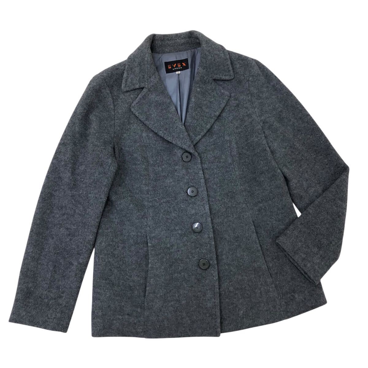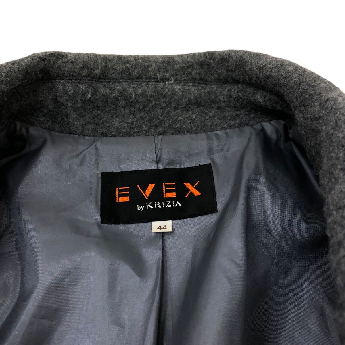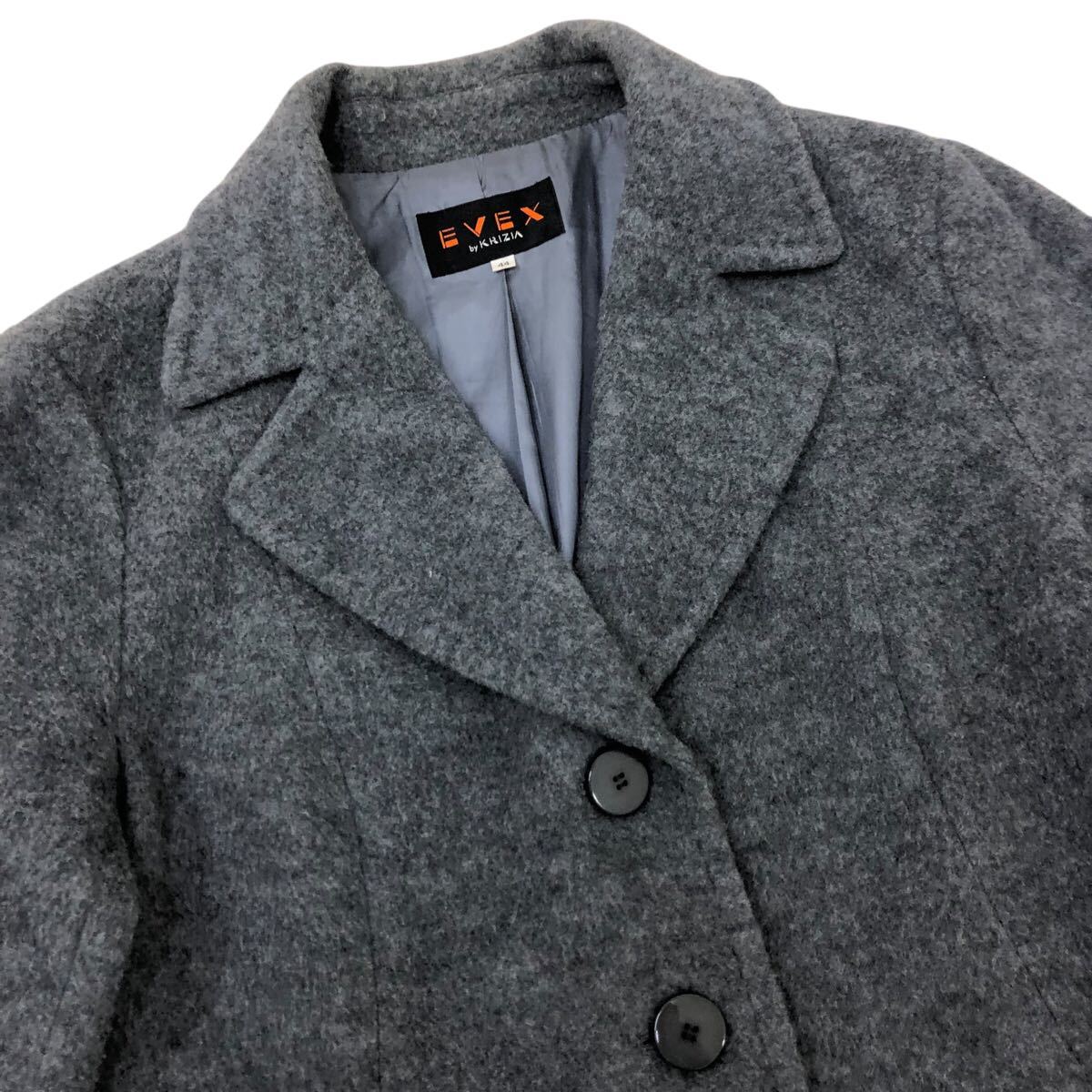 9Nm323-10 大きいサイズ EVEX by KRIZIA エヴェックス バイ クリツィア ウール テーラード ジャケット 上着 羽織り アウター グレー 44