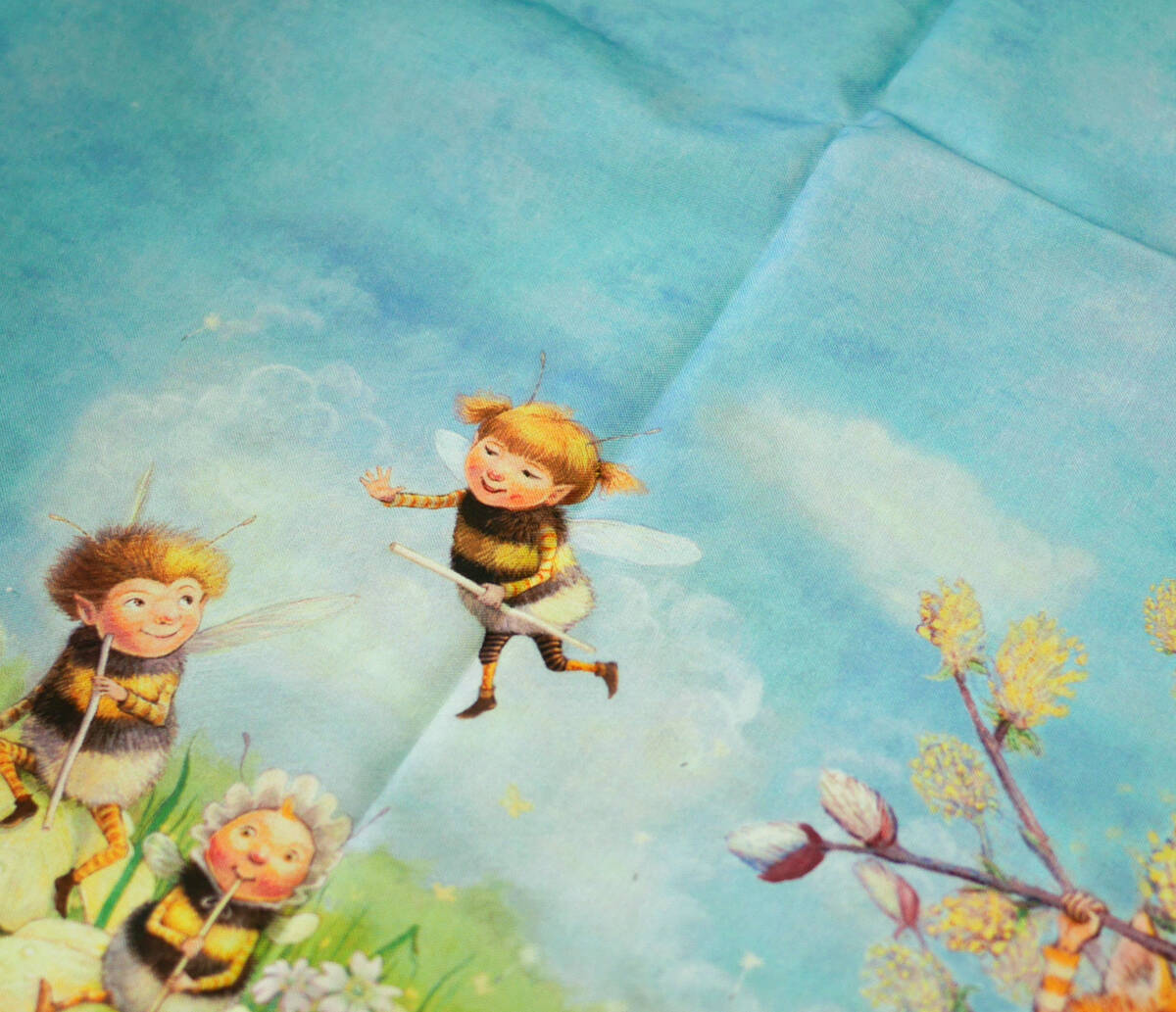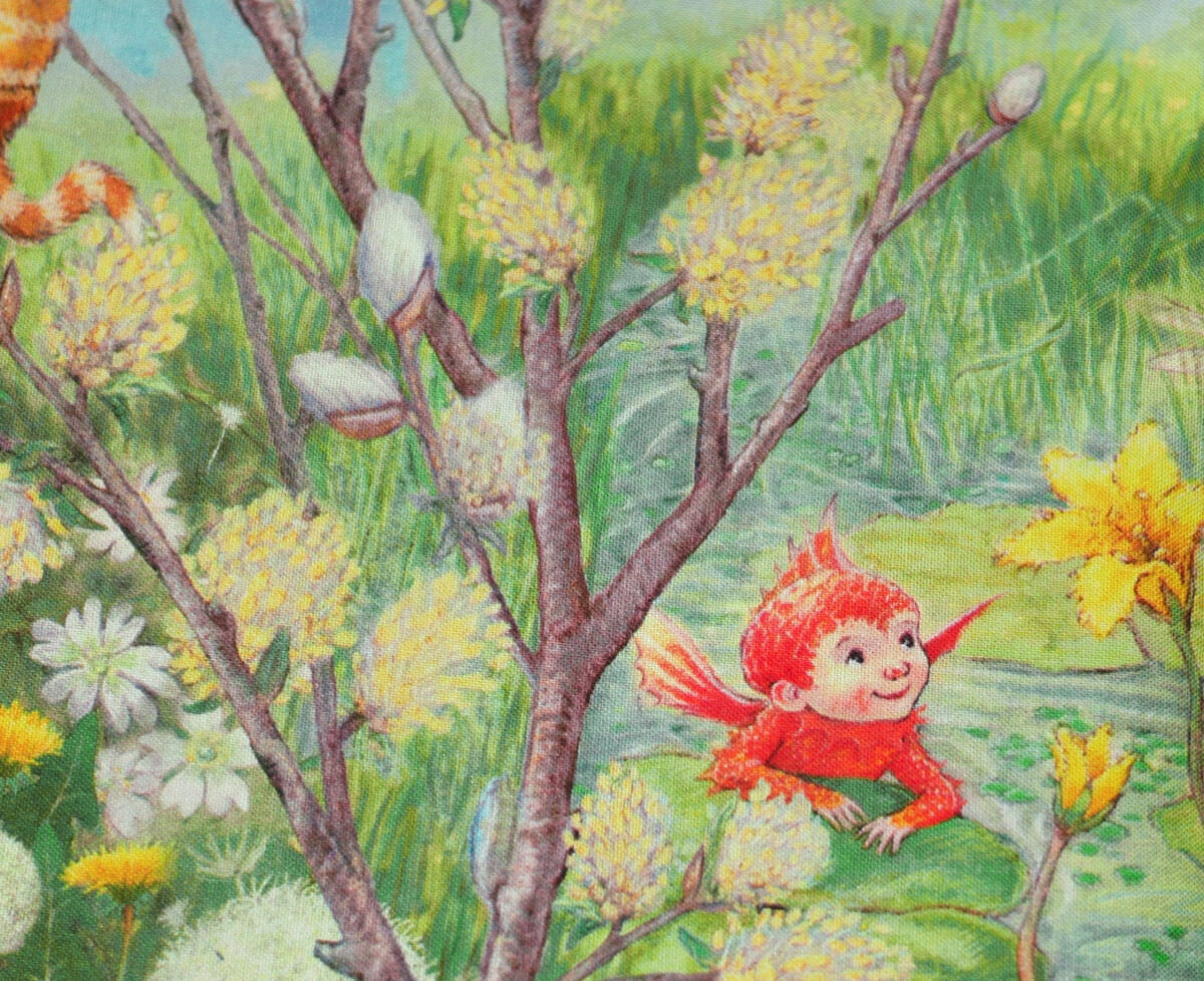 アメリカ ピクシー 妖精 花 綿毛 110×92 コットン fプリント生地