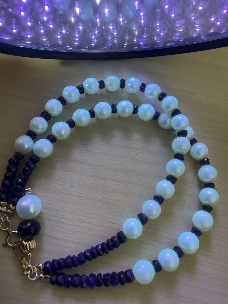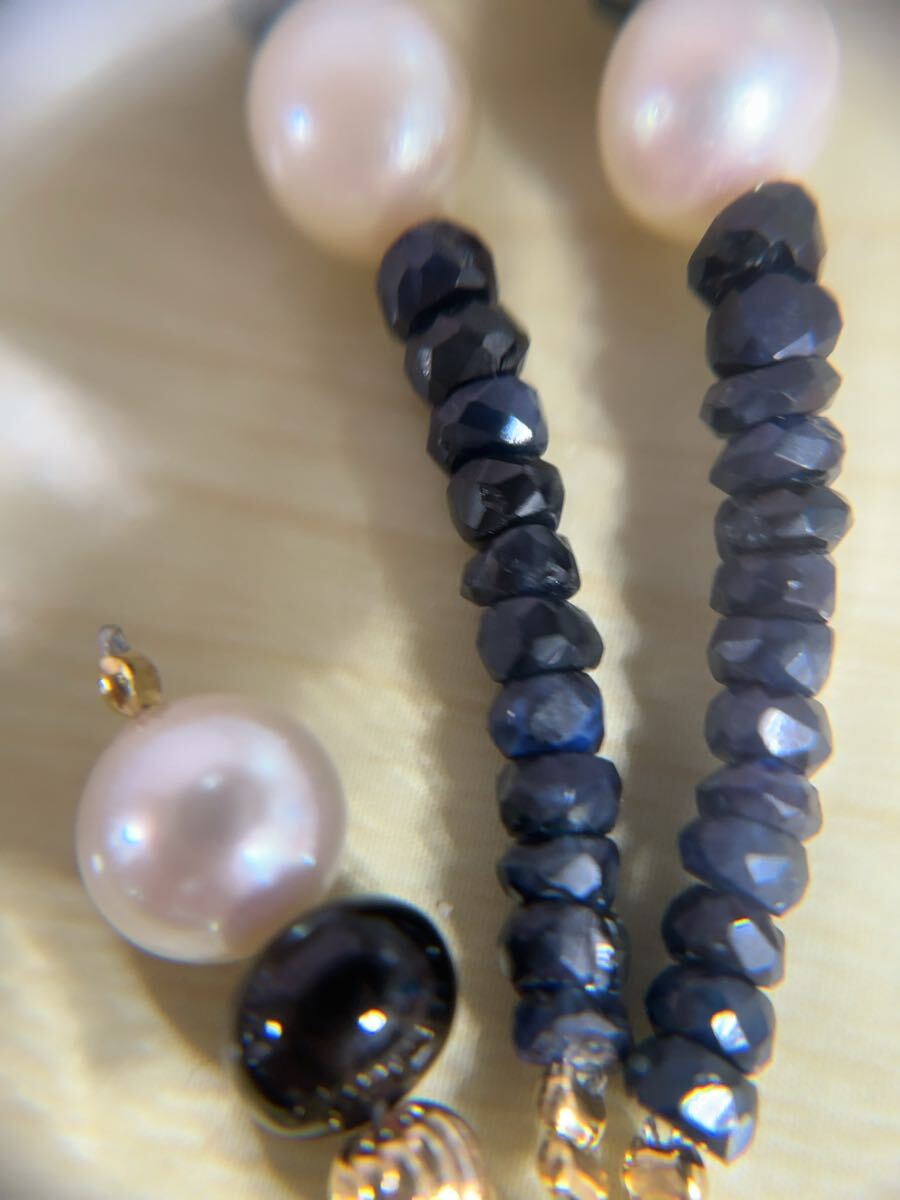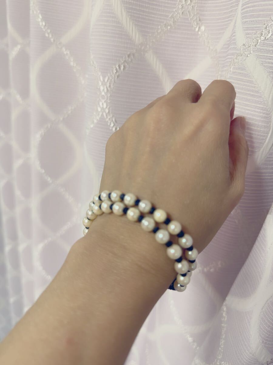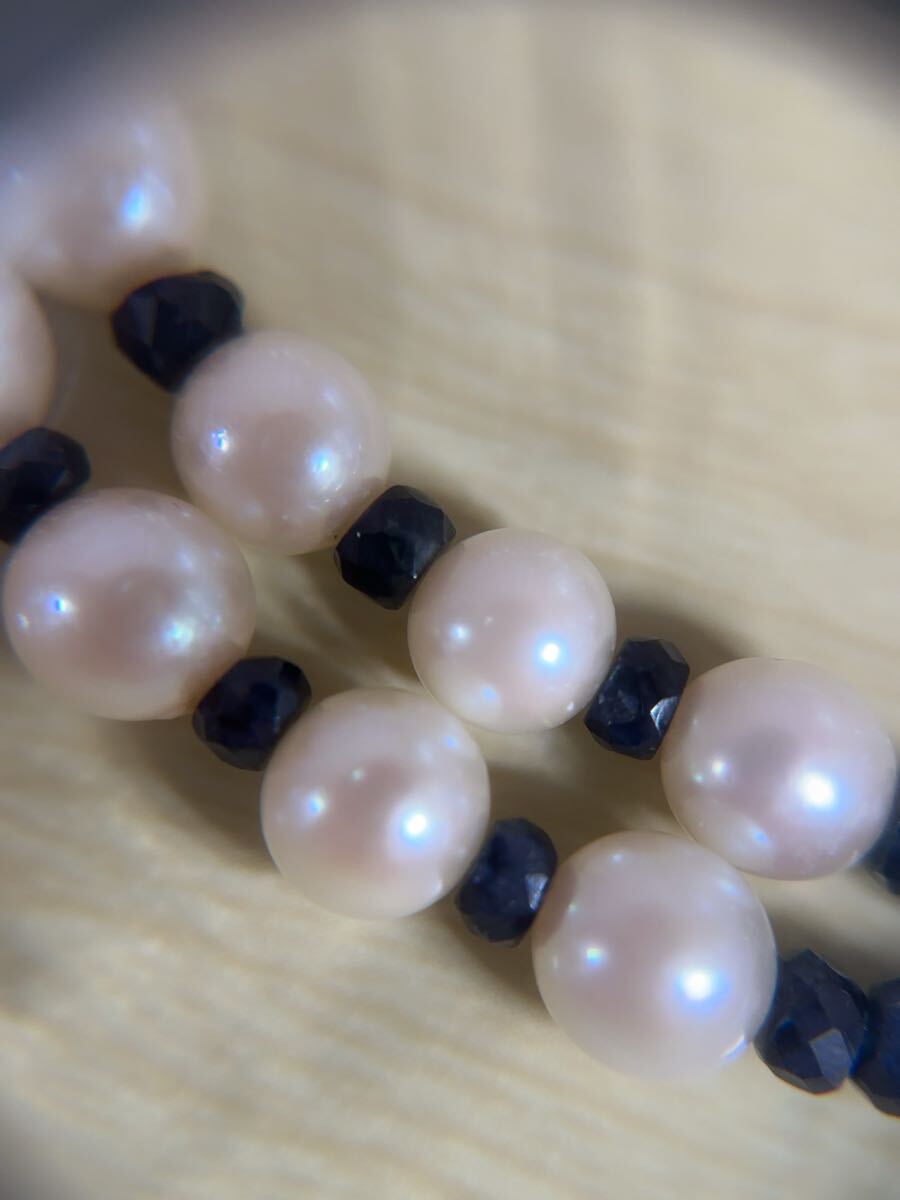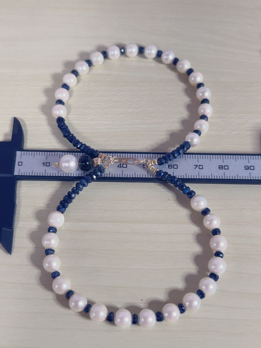 K18金アコヤ真珠&サファイアコンビ二連デザインブレスレット