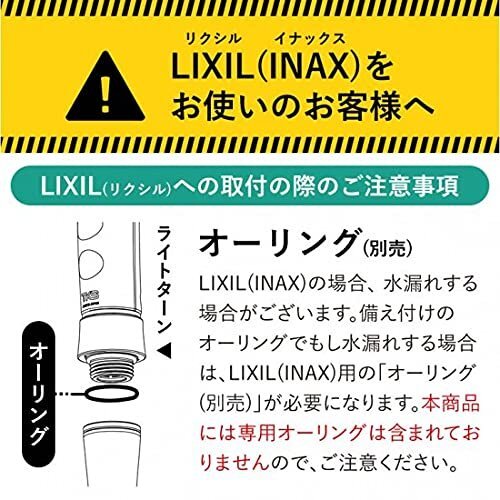 【LIXIL(INAX)をお使いのお客様へ】LIXIL(INAX)の場合、水漏れする場合がございます。備え付けのオーリングでもし水漏れする場合は、LIXIL(INAX)用の「オーリング」が必要になります。本商品には専用オーリングは含まれておりませんので、ご注意ください。