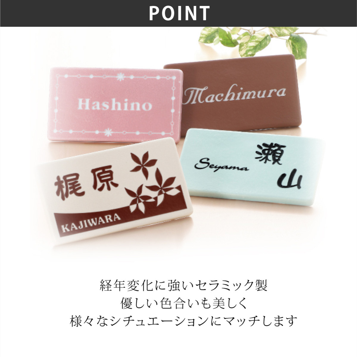 | 商品詳細 | パステルカラーのセラミックプレートから選べるガーリーなかわいい表札です。 |