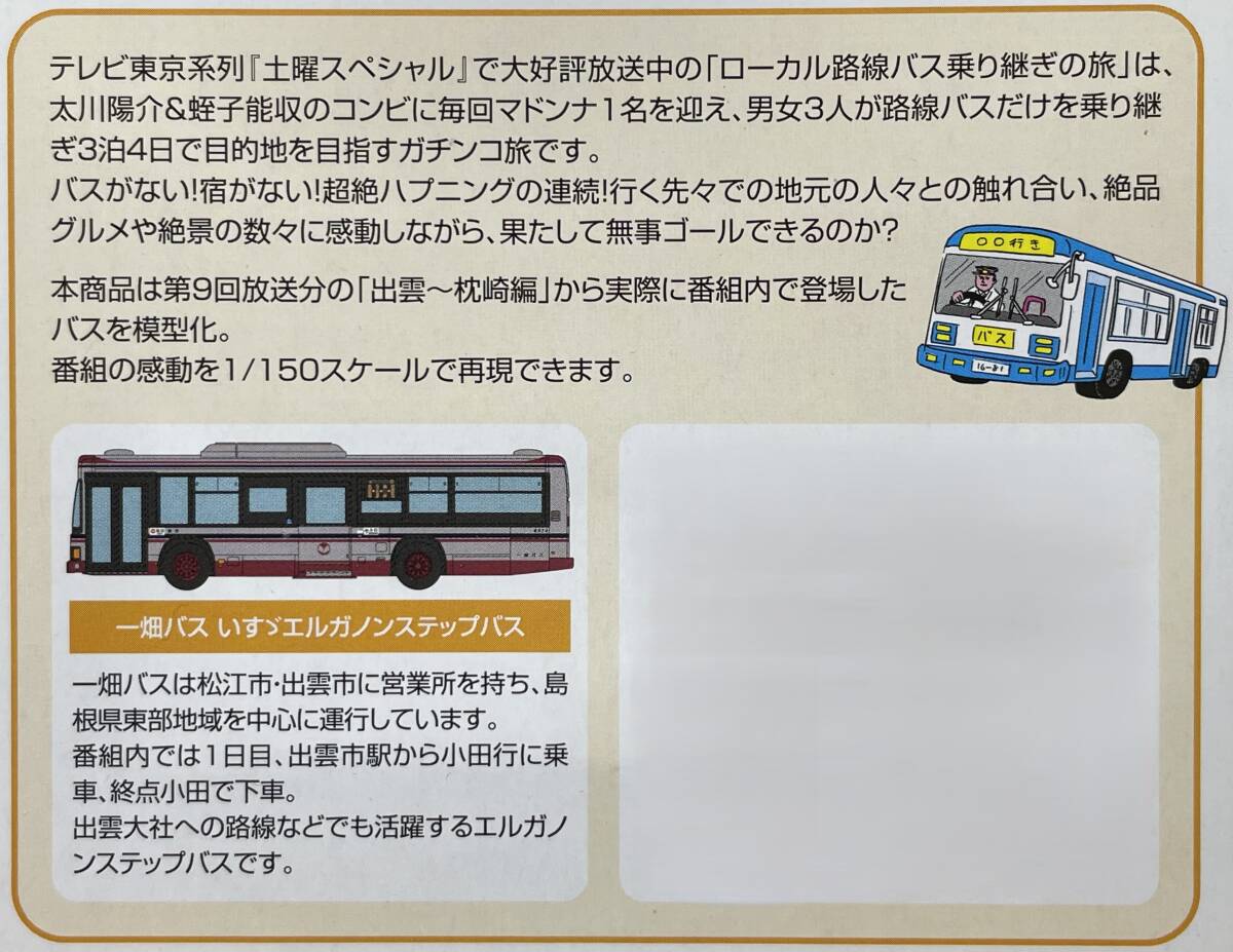 バスコレクション ローカル路線バス乗り継ぎの旅3 バラ 一畑バス いすゞエルガノンステップ 車両のみ バスコレ TOMYTEC 鉄道 模型