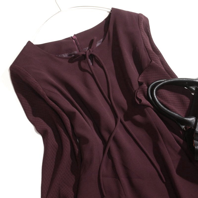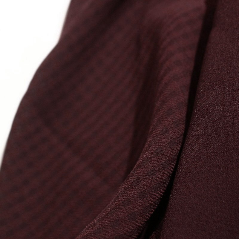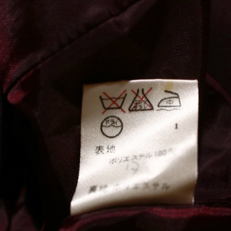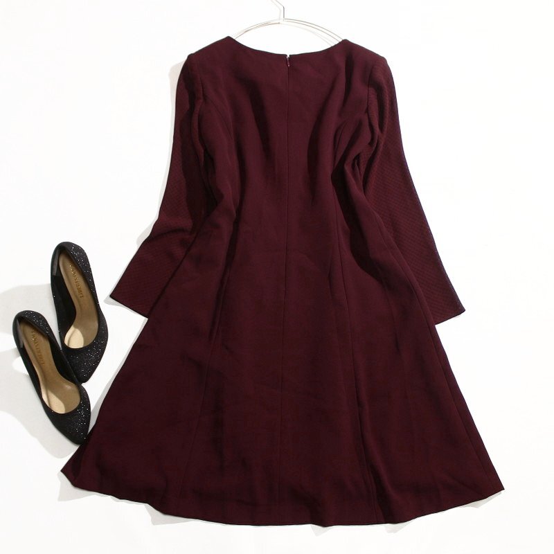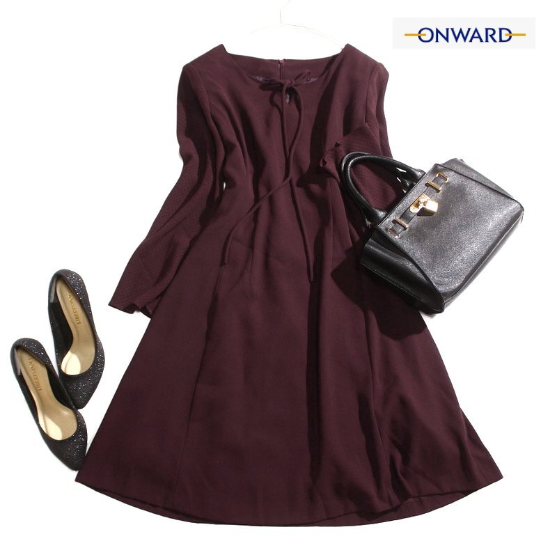 オンワード樫山 上品 シャドー 格子柄 デザインスリーブ ダークカラー ミセス ワンピース 11号 ダークレッド 赤 ポリエステル
