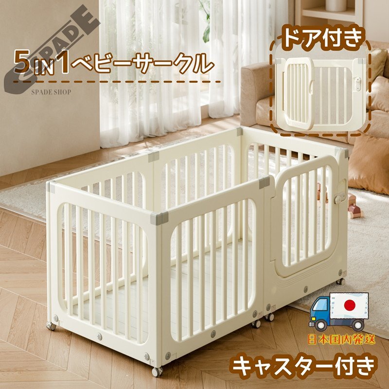 【国内発送】ベビーサークル 5in1 ロック扉付き キャスター付き 大型 室内プレイヤード ベビーゲート 赤ちゃん セーフティガード組立て簡単