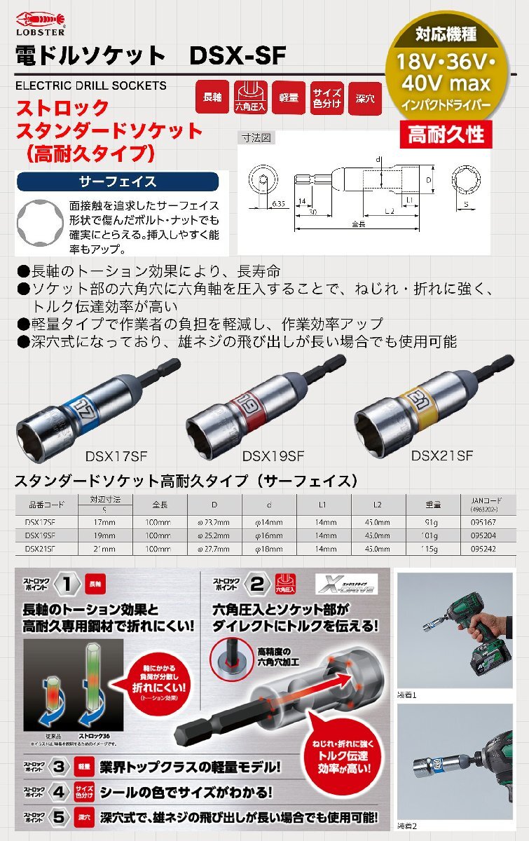 LOBSTER(エビ印)電ドルソケット サーフェイス DSX17SF 〔ストロック スタンダードソケット(高耐久タイプ)DSX-SF〕