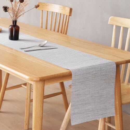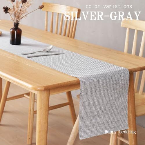HAPPY SINGU RABO テーブルランナー 【 プロ仕様 】 テーブルセンター ブリッジランナー PVC 【 防水 撥水 防油 防滑り 】 北欧 和 モダン リネン風 180×30cm テーブルクロス シンプル 幅広 (シルバーグレー 単品1枚)