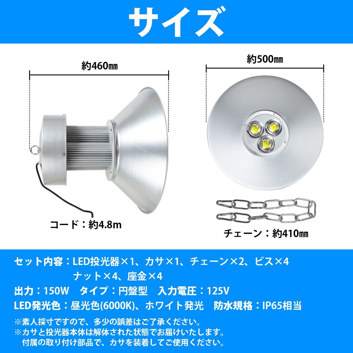 『吊り下げ照明』 水銀灯タイプ LEDだから超省エネ! 投光器 150W AC100V 5m 1個 ホワイト 白発光 作業灯 ワークライト 倉庫 駐車場 照明