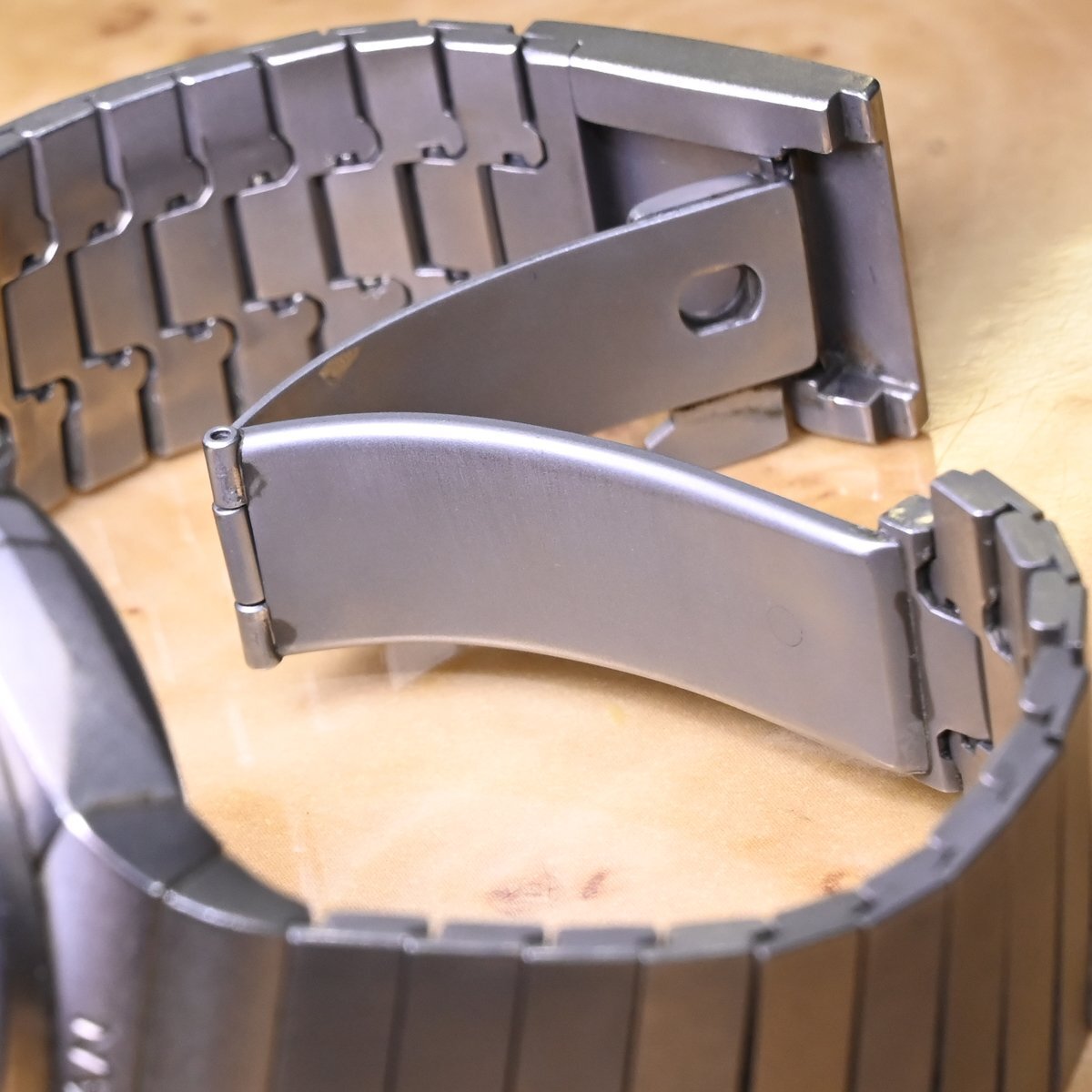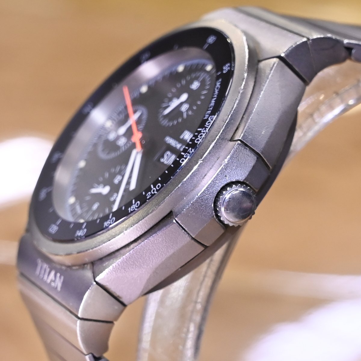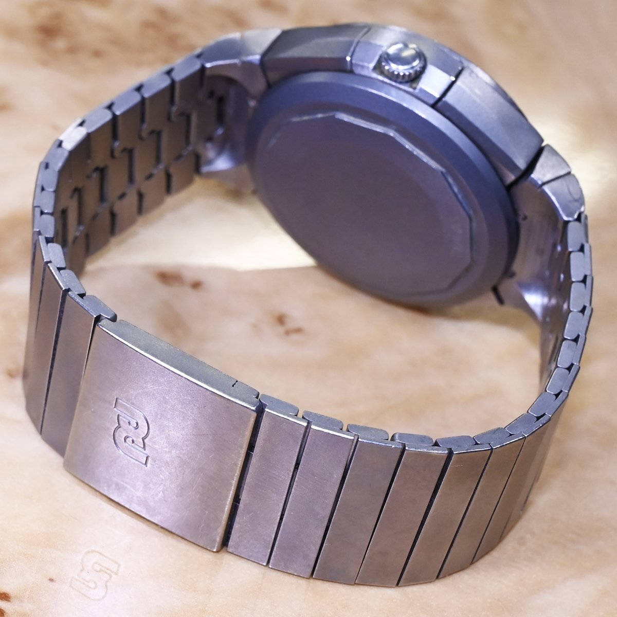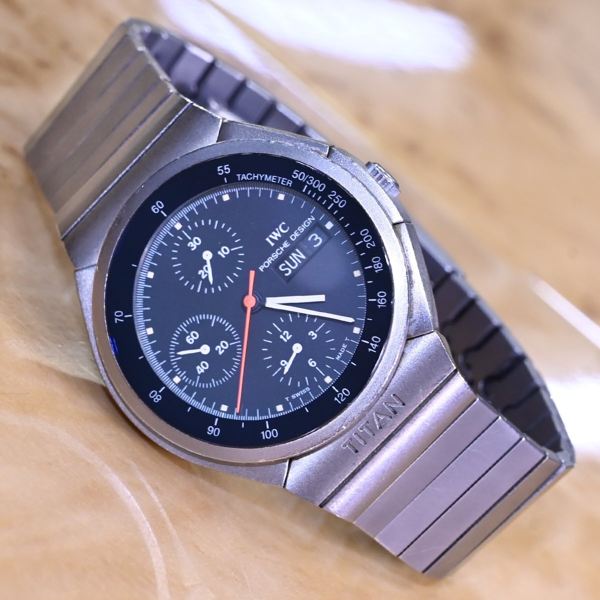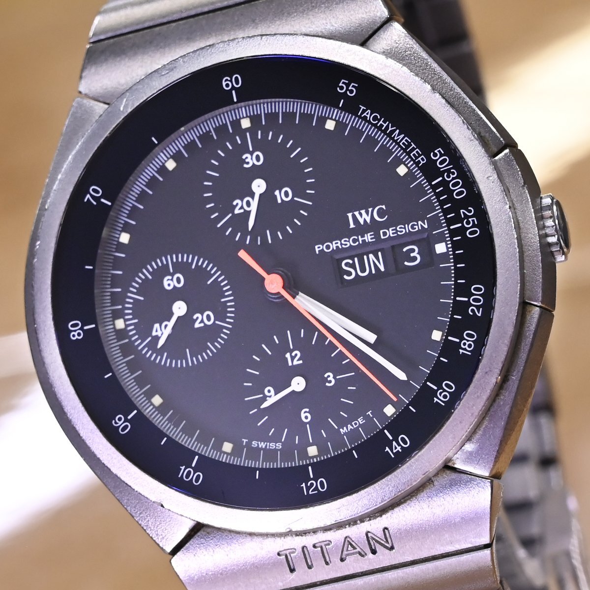 ポルシェデザイン×IWCの42mm オートマチック チタニウム クロノグラフです。 ケースと見事に一体化したファセットプッシャーの操作感等、さすがの造りの良さを実感できます。 当時、画期的だったチタン素材の導入も、その特性(非磁気性・耐腐食性・肌になじみ易い)に目をつけたF.A.ポルシェのアイデアでした。 市場流通量の圧倒的に少ないモデルなのでお探しの方も非常に多いかと思います。 ※基本動作確認済。 |