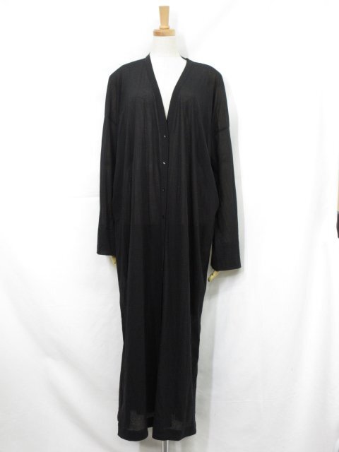超美品【ATON エイトン】KK.AG.BM.0404 コットン100% シアーロングカーディガン (レディース) size02 ブラック ◇17LT5532◇