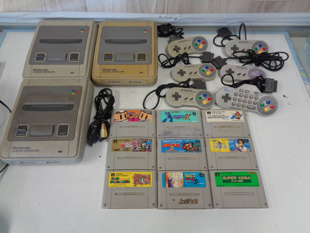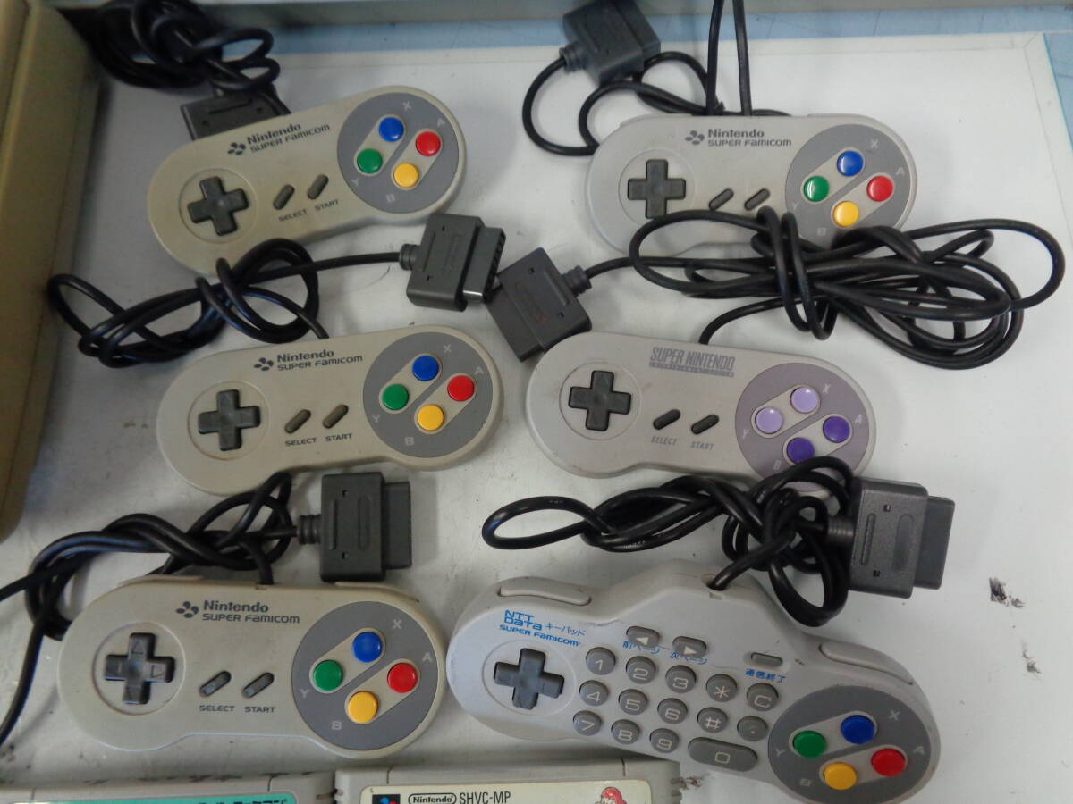 任天堂 スーパーファミコン SHVC-001 本体 (X3) ソフト9個 コントローラー6台 TV線付き