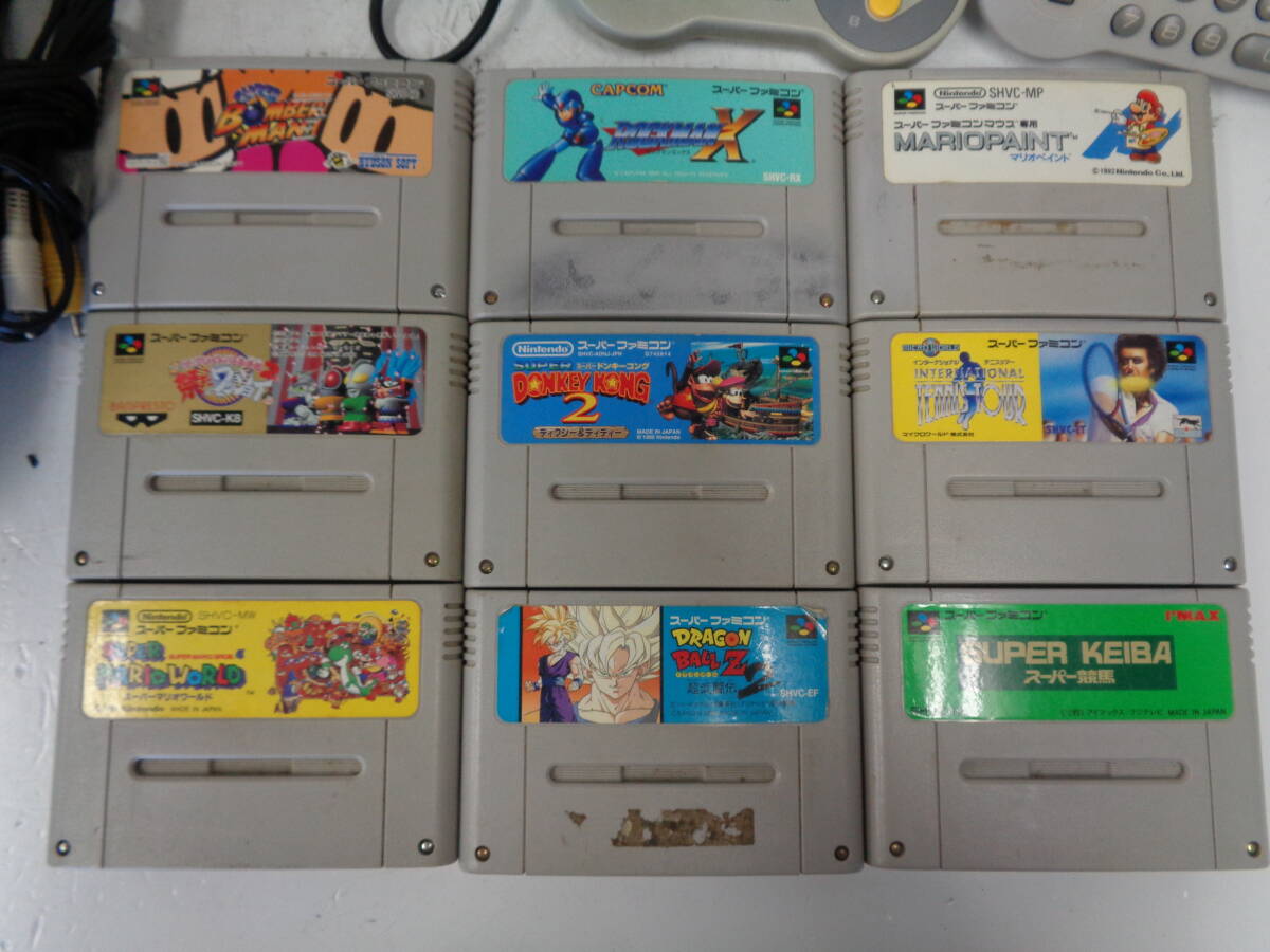 C3797 任天堂 スーパーファミコン SHVC-001 本体 (X3) ソフト9個 コントローラー6台 TV線付き ③サイズ ①AAB-5