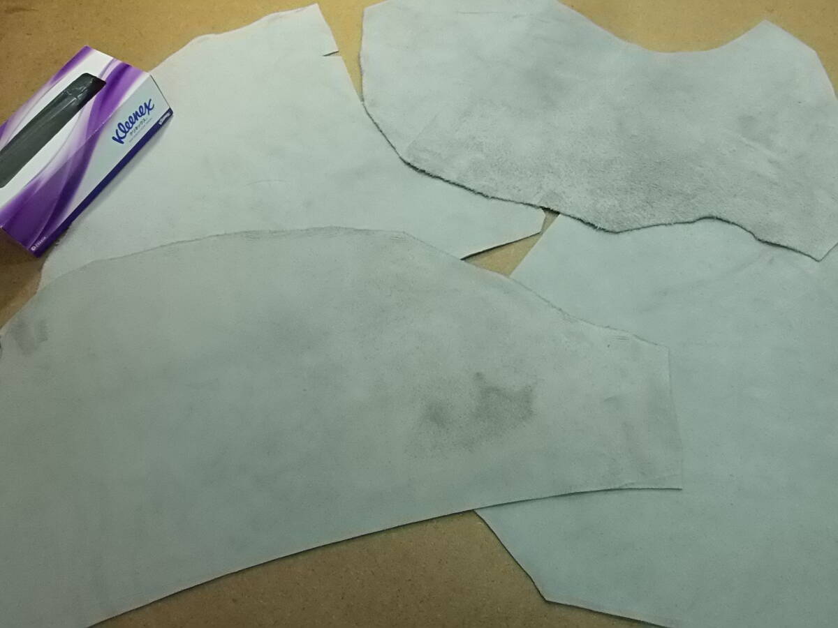 25 牛革はぎれ シュリンク ライトグレー 4枚 1.4ミリ ソフト 表面上質仕上 おおむね良好 国内タンナー 革小物 同梱包可能